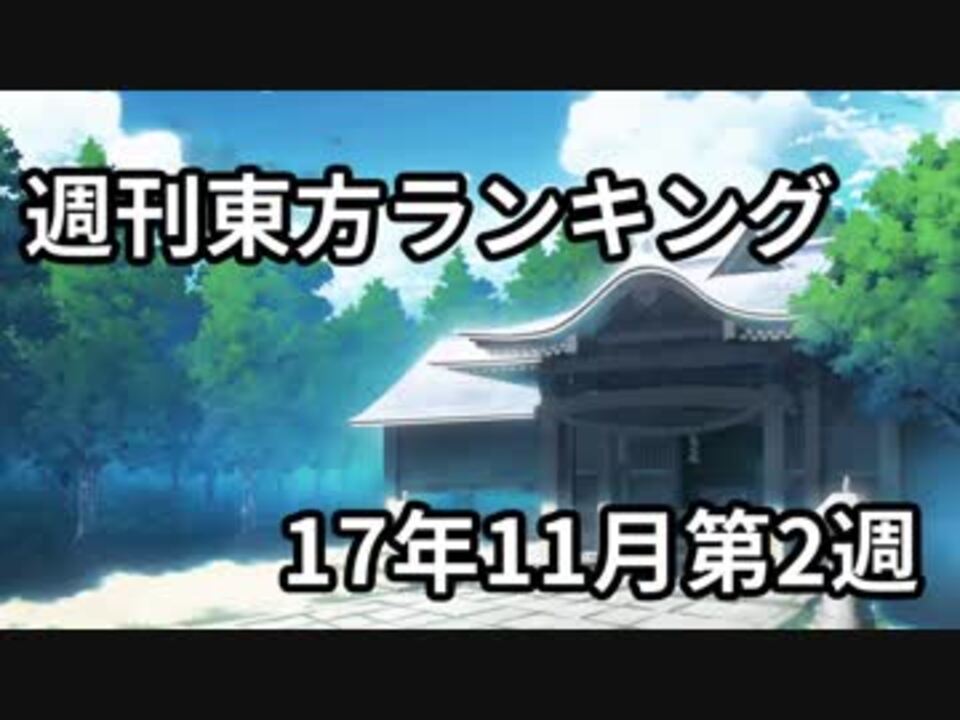 東方天空璋 配信ページ→<a href="http://store.steampowered.com/app/745880/__Hidden_Star_in_Four_Seasons/" target="_blank" rel="noopener nofollow">http://store.steampowered.com/app/745880/__Hidden_Star_in_Four_Seasons/</a><br />まさかのこのタイミングで体験版が遊べるようになるとは‥‥‥。<br /><br />「週刊東方ランキングED絵」および、アイキャッチ用のイラストを「東方動画イラスト支援」タグで募集中!詳細は大百科を!<br />■2017年11月02日(木) 05:00~2017年11月09日(木) 05:00<br /><br />■プレイリスト [<a href="http://dic.nicovideo.jp/v/sm32255358]" target="_blank" rel="noopener nofollow">http://dic.nicovideo.jp/v/sm32255358]</a><br />■エンドカード ken-3k様 (<a href="https://seiga.nicovideo.jp/seiga/im7577786" target="_blank" rel="noopener">im7577786</a>)<br />■エンディング曲 大塩杭夢様 (<a href="https://www.nicovideo.jp/watch/sm32209277" class="watch">sm32209277</a>)<br /><br />■コミュニティ [co1671378]<br />■マイリスト [<a href="https://www.nicovideo.jp/mylist/58976040" target="_blank" rel="noopener">mylist/58976040</a>]<br /><br />[<a href="https://www.nicovideo.jp/watch/sm32220227" class="watch">sm32220227</a>]←先週 次週→[<a href="https://www.nicovideo.jp/watch/sm32290637" class="watch">sm32290637</a>]