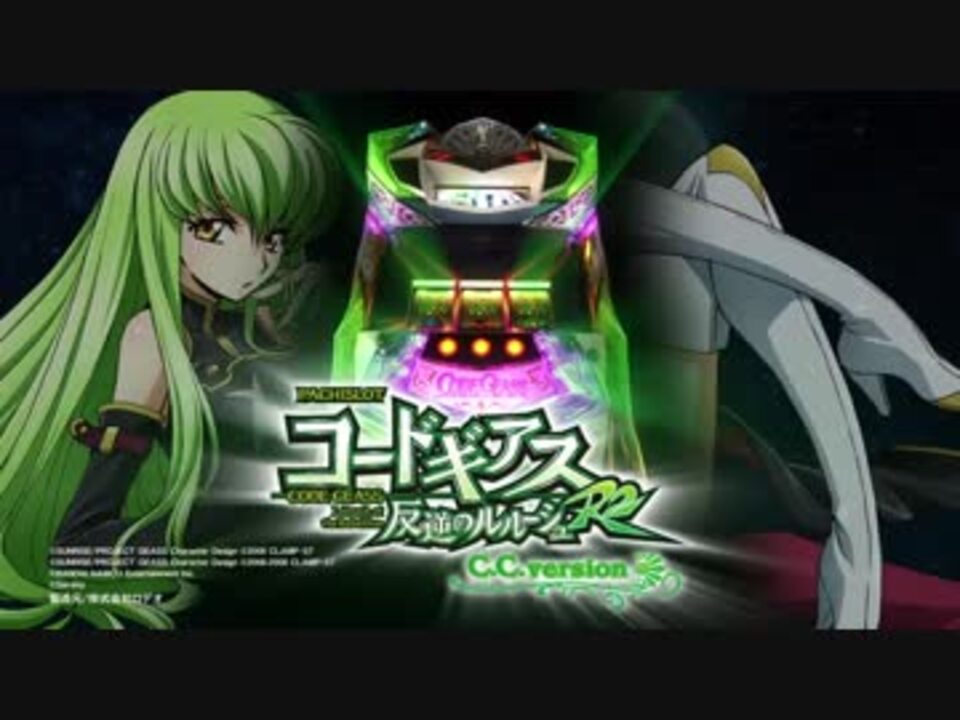 パチスロ コードギアス反逆のルルーシュR2 C.C.verのPVです<br><br>ボーナス終了後はRTに突入<br>GEASS BB後は次回ボーナスまでの無限RT<br>BB後は150GのRT<br>MB後は無限RTへの昇格を目指す50GのRT<br><br><span style="color: navy;"><strong>GBB中の打ち方</strong></span><br><span style="color: #222222;">全リール適当押しでOK</span><br><br><span style="color: #000080;"><strong>HBB・NBB中の打ち方</strong></span><br><span style="color: #222222;">10枚役獲得手順<br>①告知音発生時に逆押しで右・中リールを適当押し<br>②左リールに「白7/チェリー/白7」をビタ押し→成功時は10枚役を獲得<br>成功後は順押し適当押しで消化</span><br><br><span style="color: navy;"><strong>RT中の打ち方</strong></span><br>液晶画面にギアスマーク出現時<br>パンク役成立の可能性があるため、左リールに白7を狙って消化しましょう<br>パンク役入賞を回避しないとRT終了となる可能性あり<br>なお、左リールの目押しを失敗しても、いずれかのリールに白7を狙えばOK<br><br><span style="color: #000000; font-size: 13px;">獲得枚数</span><br>GEASS BB :252枚<br>HYPER BB :約250枚<br>NORMAL BB :約205枚<br>MIDDLE B :約70枚<br><br>機械割<br>1 97.8%~99.4%<br>2 99.4%~101.2%<br>3 102.6%~104.4%<br>4 105.5%~107.3%<br>5 109.3%~111.1%<br>6 112.0%~113.9%<br><br>その他の動画 <a href="https://www.nicovideo.jp/mylist/52739286" target="_blank" rel="noopener">mylist/52739286</a><br>