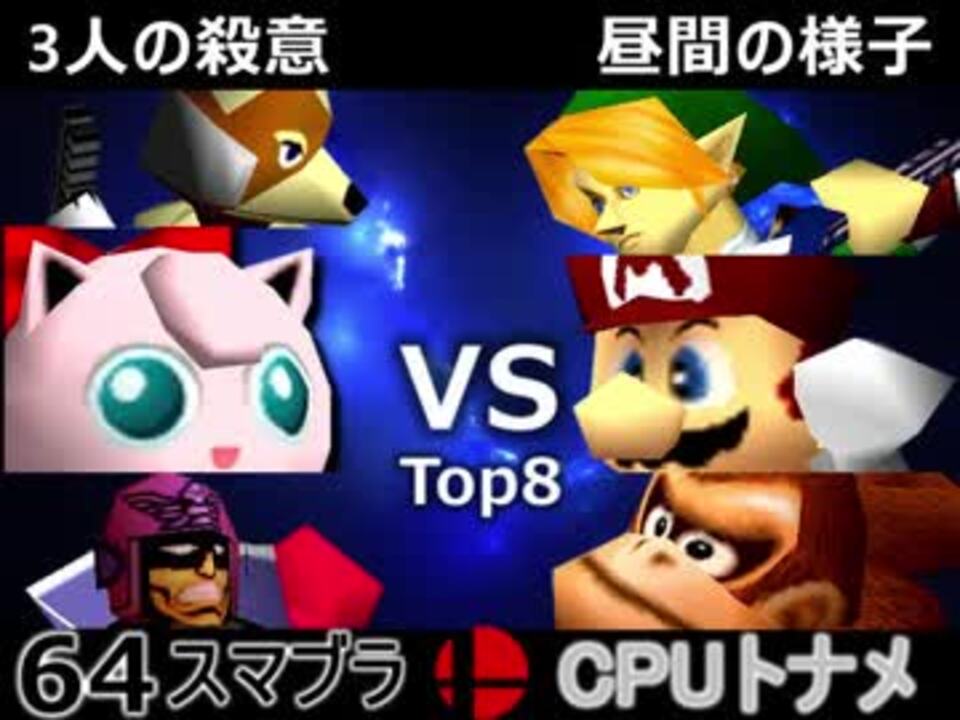 最弱 VS 最強<br /><u>※どちらが勝つかアンケ結果(Twitter調べ)</u><br />3人の殺意(殺ヨシ吐き気天才)78% VS 昼間の様子(召喚士たばマス神様)22%<br /><br /><font color="#0000ff"><u>※64スマブラCPUトナメ実況のwikiができた模様</u>→</font> <a href="https://wiki3.jp/cpu_64" target="_blank" rel="noopener nofollow">https://wiki3.jp/cpu_64</a><br /><br /><b><font size="5"><font color="#ff0000">次→</font></font></b>【<a href="https://www.nicovideo.jp/watch/sm32306101" class="watch">sm32306101</a>】<br /><br />第一試合【<a href="https://www.nicovideo.jp/watch/sm32284305" class="watch">sm32284305</a>】<br /><br />第四回大会【<a href="https://www.nicovideo.jp/watch/sm31974819" class="watch">sm31974819</a>】<br />第三回大会【<a href="https://www.nicovideo.jp/watch/sm31228643" class="watch">sm31228643</a>】<br />第二回大会【<a href="https://www.nicovideo.jp/watch/sm31072246" class="watch">sm31072246</a>】<br />第一回大会【<a href="https://www.nicovideo.jp/watch/sm23906204" class="watch">sm23906204</a>】<br />64スマブラリスト【<a href="https://www.nicovideo.jp/mylist/27365529" target="_blank" rel="noopener">mylist/27365529</a>】<br />その他シリーズ【<a href="https://www.nicovideo.jp/mylist/12965027" target="_blank" rel="noopener">mylist/12965027</a>】<br /><br /><b><font color="#00bfff">Twitter</font></b>【@niconicopppppp】<br /><b><font color="#ff4500">チャンネル</font></b>【<a href="https://ch.nicovideo.jp/p-desu" target="_blank" rel="noopener">ch.nicovideo.jp/p-desu</a>】
