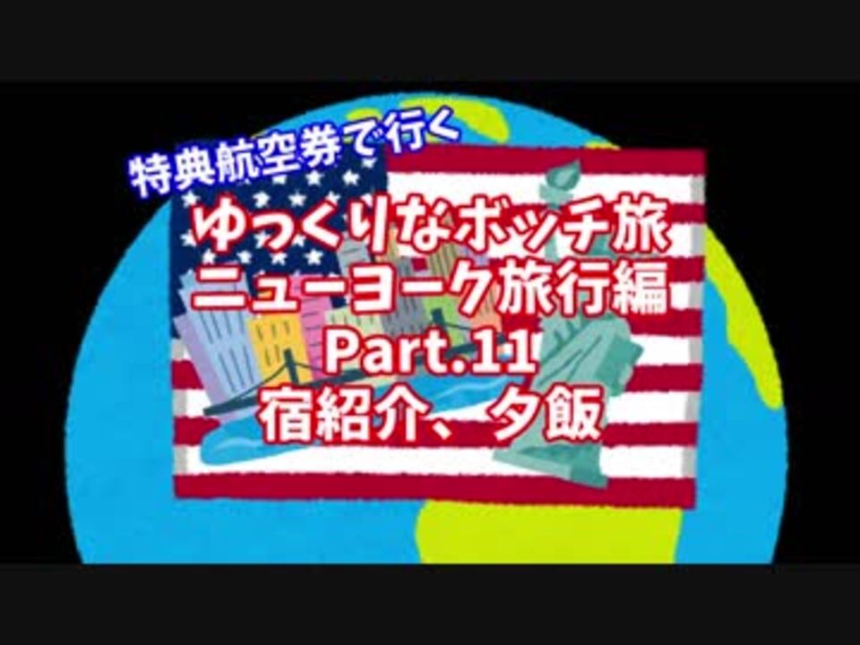 【ゆっくり】ゆっくりなボッチ旅 ニューヨーク旅行編 Part.11【ボッチ】<br />1日目<br />宿紹介、夕飯<br /><br />2017年八月に米国はニューヨークに行ってきました。<br />宿の部屋と朝食を紹介。<br />そして、あの映画で出てきたレストランで夕飯です。<br />Twitter: @elmarit44<br />#アップが遅くなり申し訳ない<br /><br />次:<a href="https://www.nicovideo.jp/watch/sm32328927" class="watch">sm32328927</a><br />前:<a href="https://www.nicovideo.jp/watch/sm32258113" class="watch">sm32258113</a><br />Part.01はこちら:<a href="https://www.nicovideo.jp/watch/sm31853566" class="watch">sm31853566</a><br />2017年ニューヨーク旅行:<a href="https://www.nicovideo.jp/mylist/59688559" target="_blank" rel="noopener">mylist/59688559</a><br /><br />□過去のシリーズ<br />2017年台北旅行:<a href="https://www.nicovideo.jp/mylist/58686511" target="_blank" rel="noopener">mylist/58686511</a><br /><br />□撮影機材<br />SONY HDR-AS300<br />Panasonic LUMIX DMC-GX7MK2<br /><br />□動画作成<br />・ゆっくりMovie Maker3<br />・AviUtl<br />・x264guiEx<br />・けいふぉんと<br />・いらすとや<br />・無料効果音で遊ぼう!<br />・音楽研究所<br />