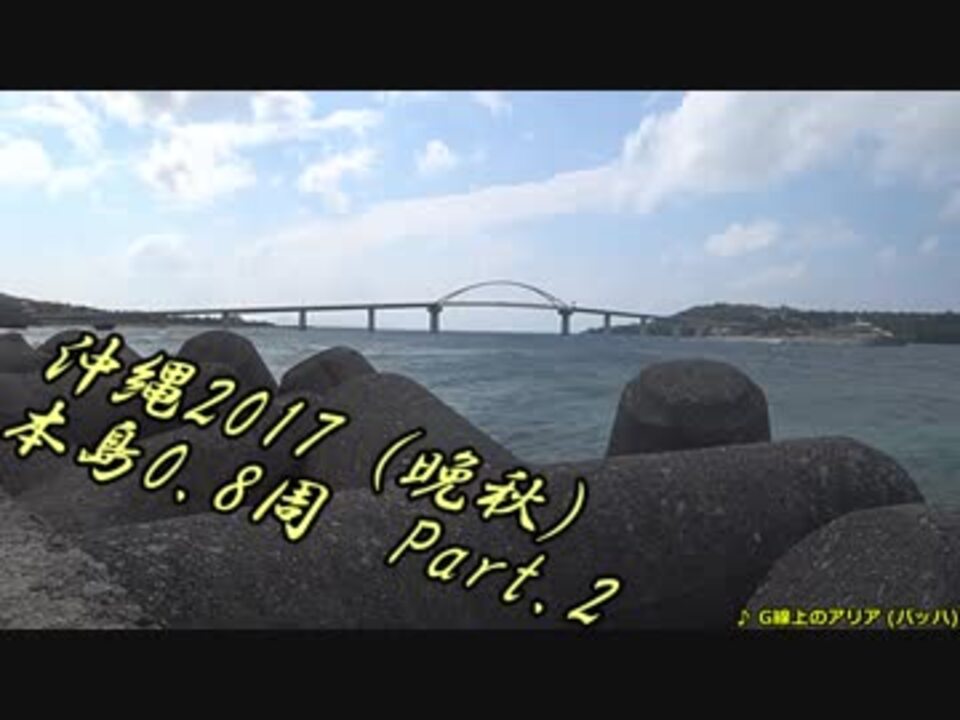 東シナ海側 恩納村~名護市~本部町<br>21世紀の森 - ゴリラチョップ - 本部港 - 瀬底大橋 - 瀬底島<br><br>世界は変化しつづけているんだ。<br>変化しないものは ひとつもないんだよ。<br><br>前回 … <a href="https://www.nicovideo.jp/watch/sm32275483" class="watch">sm32275483</a><br>次回 … <a href="https://www.nicovideo.jp/watch/sm32395174" class="watch">sm32395174</a><br><br><span style="color: #000000; font-size: 13px;">沖縄ほぼ一周旅(2017) … <a href="https://www.nicovideo.jp/mylist/66770378" target="_blank" rel="noopener">mylist/66770378</a><br>2017おバイク … </span><span style="color: #006699; font-size: 13px;"><a href="https://www.nicovideo.jp/mylist/66770417" target="_blank" rel="noopener">mylist/66770417</a></span><br><br>Youtube版(高画質)… <a href="https://youtu.be/JcCmEqiALgI" target="_blank" rel="noopener nofollow">https://youtu.be/JcCmEqiALgI</a><br /><br>ふよふよしているの<br>絵:横沢さわらさん VOICEVOX:WhiteCUL<br><br>【シリーズ】<br>くうねるきゃんぷ … <a href="https://www.nicovideo.jp/series/516069" target="_blank" rel="noopener">series/516069</a><br>お写んぽ! … <a href="https://www.nicovideo.jp/series/435756" target="_blank" rel="noopener">series/435756</a><br>様子がおかしい! … <a href="https://www.nicovideo.jp/series/418875" target="_blank" rel="noopener">series/418875</a><br>FF7 魔法マテリアのみ初期防具ガールズ一人旅ASM … <a href="https://www.nicovideo.jp/series/438696" target="_blank" rel="noopener">series/438696</a><br>きんかつ!V-STROM1050XT … <a href="https://www.nicovideo.jp/series/144466" target="_blank" rel="noopener">series/144466</a><br>FF6 魔法のみ全裸ガールズ一人旅AS1 … <a href="https://www.nicovideo.jp/series/9438" target="_blank" rel="noopener">series/9438</a><br>おバイク!GLADIUS400 ABS … <a href="https://www.nicovideo.jp/series/68579" target="_blank" rel="noopener">series/68579</a><br>FF5 魔法のみ全裸一人旅AS1 … <a href="https://www.nicovideo.jp/series/9432" target="_blank" rel="noopener">series/9432</a><br>DQ3 呪文のみ全裸一人旅 … <a href="https://www.nicovideo.jp/series/9416" target="_blank" rel="noopener">series/9416</a><br>DQ2 ムーンブルクの王女一人旅 … <a href="https://www.nicovideo.jp/series/9414" target="_blank" rel="noopener">series/9414</a><br>DQ1 全裸 … <a href="https://www.nicovideo.jp/series/9412" target="_blank" rel="noopener">series/9412</a><br>FE 紋章の謎 天馬騎士単騎 第2部 英雄戦争 … <a href="https://www.nicovideo.jp/series/9404" target="_blank" rel="noopener">series/9404</a><br>FE 紋章の謎 天馬騎士単騎 第1部 暗黒戦争 … <a href="https://www.nicovideo.jp/series/9401" target="_blank" rel="noopener">series/9401</a><br>聖剣2 全裸プリム一人旅 武器Lv1など … <a href="https://www.nicovideo.jp/series/9396" target="_blank" rel="noopener">series/9396</a><br>ロマサガ2 魔術士不得意武器のみ … <a href="https://www.nicovideo.jp/series/9388" target="_blank" rel="noopener">series/9388</a><br>ロマサガ1 術法のみ一人旅で各イベント攻略 … <a href="https://www.nicovideo.jp/series/9386" target="_blank" rel="noopener">series/9386</a><br><br>SNSとか色々なリンク … <a href="https://lit.link/Unaa" target="_blank" rel="noopener nofollow">https://lit.link/Unaa</a>