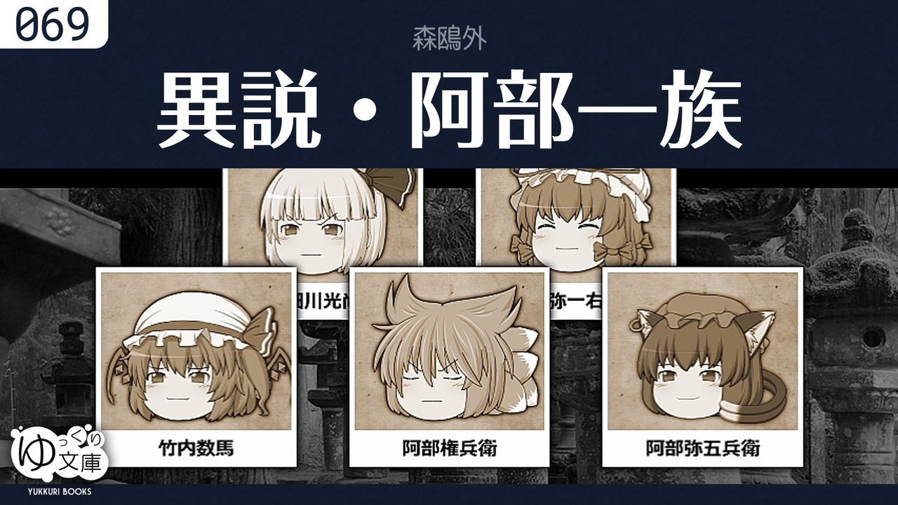 <span style="color: red;"><strong>069x 命より大切なものはあるか?</strong></span><br>観測者2名と、当事者2名が、あの事件を振り返る。阿部一族の反乱は仕組まれたものだったのか?<br><span style="color: green;">Sequel to The Ave Family (2017)</span><br><br>(関連)<br><a href="https://www.nicovideo.jp/watch/sm22888805" class="watch">sm22888805</a> 小泉八雲「停車場にて」 ... 明治時代の熊本<br><br>●ゆっくり文庫:森鴎外<br><a href="https://www.nicovideo.jp/watch/sm22495614" class="watch">sm22495614</a> 高瀬舟<br><a href="https://www.nicovideo.jp/watch/sm32087020" class="watch">sm32087020</a> 阿部一族<br><a href="https://www.nicovideo.jp/watch/sm32352710" class="watch">sm32352710</a> <span style="color: #ff00ff;"><strong>異説・阿部一族</strong></span><br><a href="https://www.nicovideo.jp/watch/sm32363927" class="watch">sm32363927</a> PV (堀内孝雄「憧れ遊び」)<br><a href="https://www.nicovideo.jp/watch/sm32517554" class="watch">sm32517554</a> 牛鍋<br><br>---<br>ゆっくり文庫:全部<br><a href="https://www.nicovideo.jp/mylist/74874627" target="_blank" rel="noopener">mylist/74874627</a><br>ゆっくり文庫:近況<br><a href="https://twitter.com/trynext" target="_blank" rel="noopener nofollow">https://twitter.com/trynext</a><br>---<br><br>(訂正)<br><a href="#" class="seekTime" data-seekTime="03:26" onclick="seekNicoPlayer('#03:26'); return false;">#03:26</a> 千百万石→千百石<br>