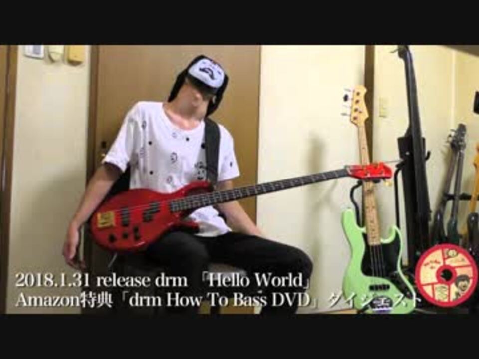 Amazon特典のDVDがちびっと。<br />CDでます!!2018.1.31発売です!!!<br />drm 1st solo album「Hello World」<br />「Hello World」特設<br /><a href="http://www.subcul-rise.jp/drm/helloworld" target="_blank" rel="noopener nofollow">http://www.subcul-rise.jp/drm/helloworld</a><br />アマゾン(ベース講座DVD付)<br /><a href="https://www.amazon.co.jp/dp/B0779TKK5Q/" target="_blank" rel="noopener nofollow">https://www.amazon.co.jp/dp/B0779TKK5Q/</a><br /><br />「コンニチワ、セカイ」レコハツライブ<br />2/3(土)東京:池袋LIVE INN ROSA ゲストlogical emotion(まらしぃ、タブクリア)<br />2/16(金) 名古屋ReNY Limited maras k(marasy×kors k)Live(special act drm)<br />2/18(日)福岡:DRUM SON<br />2/24(土)大阪:RUIDO<br />チケット一般発売 2017/12/2(土) 10:00〜<br />イープラス <a href="http://eplus.jp/drm" target="_blank" rel="noopener nofollow">http://eplus.jp/drm</a><br />ローチケ <a href="http://l-tike.com/search/?keyword=drm" target="_blank" rel="noopener nofollow">http://l-tike.com/search/?keyword=drm</a><br />ぴあ(福岡のみ) <a href="http://t.pia.jp/pia/event/event.do?eventCd=1754008&afid=700&__from=twitter" target="_blank" rel="noopener nofollow">http://t.pia.jp/pia/event/event.do?eventCd=1754008&afid=700&__from=twitter</a><br /><br /><br />マイリストとか機材とか→<a href="https://www.nicovideo.jp/mylist/13365392" target="_blank" rel="noopener">mylist/13365392</a><br />ついっちゃー@drm0120<br />LINE公式@drmbass<br />HP <a href="http://drm0120.com/" target="_blank" rel="noopener nofollow">http://drm0120.com/</a>