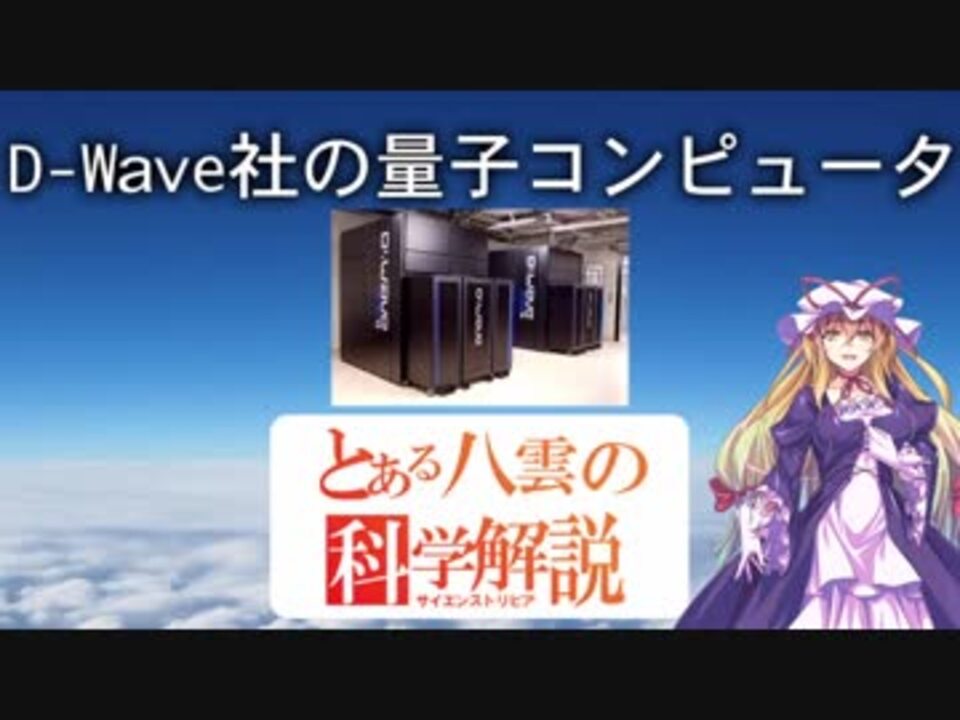 D-Wave社の量子コンピュータについてです。<br><br>ilim様 Akira@砂袋様 kuro様 よっち様 suu様 プルギ様 おだんご様 キロス様 TageSP様 twinkle様 SUZAN様 ゆきみどり様 量子力学すごい様 flag様 宇宙太将軍様 片倉静流様 きなこ棒様 蓬莱山やる夫様 m様 くらふと様 科学サイド様 たがじょう様 Winterbourne様 nic様 nak様 Emmett L Brown様 たちくらみ様 nir様 広告ありがとうございます。<br><br>とある八雲の科学解説シリーズ <a href="https://www.nicovideo.jp/mylist/58019196" target="_blank" rel="noopener">mylist/58019196</a><br>前回 『マクスウェル方程式とモノポール』 <a href="https://www.nicovideo.jp/watch/sm32171102" class="watch">sm32171102</a><br>次回 『高速フーリエ変換』 <a href="https://www.nicovideo.jp/watch/sm32638310" class="watch">sm32638310</a>