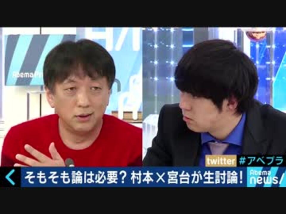 MC:村本大輔(ウーマンラッシュアワー) <br />レギュラー:上念司(経済評論家)/原田曜平(博報堂ブランドデザイン若者研究所)<br />ゲスト:宮台真司(社会学者)<br />関連:現在のテレビとネットについて 宇野常寛×村本大輔<a href="https://www.nicovideo.jp/watch/sm32569517" class="watch">sm32569517</a>