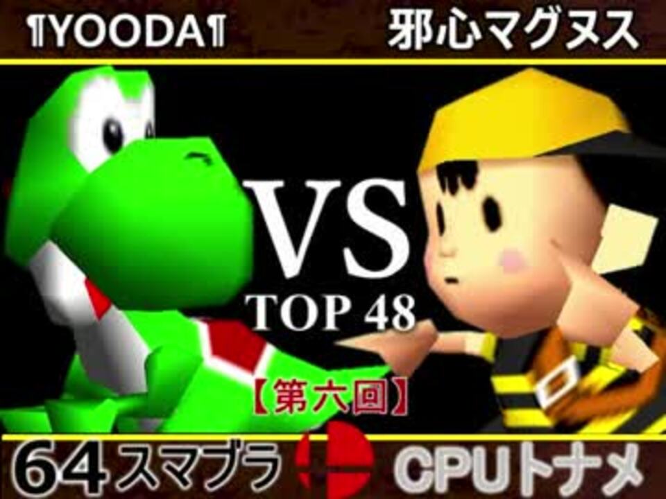 ¶YOODA¶初登場!(TOP32です)<br /><u>※どちらが勝つかアンケ結果(Twitter調べ)</u><br />¶YOODA¶(YO) 33% VS 邪心マグヌス(NE) 67%<br /><br />【大会形式】ダブルイリミネーション方式トーナメント<br />・一度負けてもルーザーズ側を勝ち続ければ決勝に行ける<br /><br /><font color="#0000ff"><u>※64スマブラCPUトナメ実況のwikiができた模様</u>→</font> <a href="https://wiki3.jp/cpu_64" target="_blank" rel="noopener nofollow">https://wiki3.jp/cpu_64</a><br /><br /><b><font size="5"><font color="#ff0000">次→</font></font></b>【<a href="https://www.nicovideo.jp/watch/sm32622870" class="watch">sm32622870</a>】<br /><br />前【<a href="https://www.nicovideo.jp/watch/sm32622801" class="watch">sm32622801</a>】 一回戦第一試合【<a href="https://www.nicovideo.jp/watch/sm32538745" class="watch">sm32538745</a>】<br /><br />第六回マイリスト【<a href="https://www.nicovideo.jp/mylist/60846974" target="_blank" rel="noopener">mylist/60846974</a>】<br />64スマブラCPUトナメ実況part1まとめ【<a href="https://www.nicovideo.jp/mylist/60846861" target="_blank" rel="noopener">mylist/60846861</a>】<br />その他シリーズ【<a href="https://www.nicovideo.jp/mylist/12965027" target="_blank" rel="noopener">mylist/12965027</a>】<br /><br /><b><font color="#00bfff">Twitter</font></b>【@niconicopppppp】<br /><b><font color="#ff4500">チャンネル</font></b>【<a href="https://ch.nicovideo.jp/p-desu" target="_blank" rel="noopener">ch.nicovideo.jp/p-desu</a>】