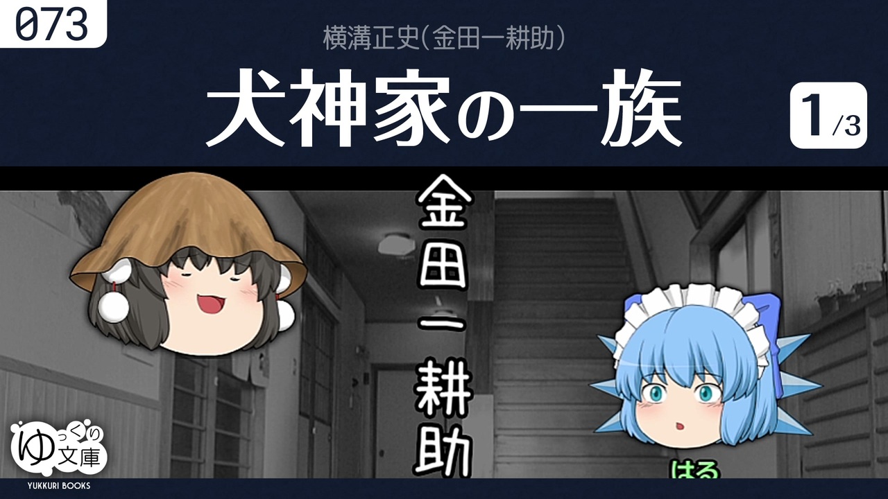 <span style="color: red;"><strong>073a 涙さえ燃えている──</strong></span><br>犬神佐兵衛の莫大な遺産を相続したのは、血縁ではない美女・野々宮珠世だった。佐兵衛の3人の孫たちはそれぞれ珠世を我が物にしようと企むが、その争いは連続殺人事件に発展する。<br><span style="color: green; font-size: 13px;">The Inugami Clan by Seishi Yokomizo (1972)</span><br><br>(うp主より)パイロット版として公開しましたが、1年を経て完結しました。正直、こんな反響があるとは思ってませんでした。<br>編集後記:<a href="http://trynext.com/story/ybook/yb073.php" target="_blank" rel="noopener nofollow">http://trynext.com/story/ybook/yb073.php</a><br><br>●ゆっくり文庫:乱歩と横溝 <a href="https://www.nicovideo.jp/mylist/67551059" target="_blank" rel="noopener">mylist/67551059</a><br><a href="https://www.nicovideo.jp/watch/sm32629937" class="watch">sm32629937</a> <span style="color: #ff00ff;"><strong>横溝正史「犬神家の一族」(1/3)</strong></span><br><a href="https://www.nicovideo.jp/watch/sm34412427" class="watch">sm34412427</a> 横溝正史「犬神家の一族」(2/3)<br><a href="https://www.nicovideo.jp/watch/sm34434715" class="watch">sm34434715</a> 横溝正史「犬神家の一族」(3/3)<br><a href="https://www.nicovideo.jp/watch/sm34441117" class="watch">sm34441117</a> 横溝正史「犬神家の一族」PV (金子由香利「愛のバラード」)<br><a href="https://www.nicovideo.jp/watch/sm34502341" class="watch">sm34502341</a> 横溝正史「百日紅の下にて」<br><a href="https://www.nicovideo.jp/watch/sm34642963" class="watch">sm34642963</a> 江戸川乱歩「心理試験」<br><a href="https://www.nicovideo.jp/watch/sm34676360" class="watch">sm34676360</a> 江戸川乱歩「双生児 -ある死刑囚が教誨師にうちあけた話-」<br><a href="https://www.nicovideo.jp/watch/sm37642159" class="watch">sm37642159</a> 江戸川乱歩「屋根裏の散歩者」<br><br>(関連)<br><a href="https://www.nicovideo.jp/watch/sm35240023" class="watch">sm35240023</a> 【スケキヨ】悪魔が来りて笛を吹く<br>●ゆっくり横溝正史 <a href="https://www.nicovideo.jp/mylist/64249566" target="_blank" rel="noopener">mylist/64249566</a><br><br>---<br>ゆっくり文庫:全部<br><a href="https://www.nicovideo.jp/mylist/74874627" target="_blank" rel="noopener">mylist/74874627</a><br>ゆっくり文庫:近況<br><a href="https://twitter.com/trynext" target="_blank" rel="noopener nofollow">https://twitter.com/trynext</a><br>---<br><br><br>