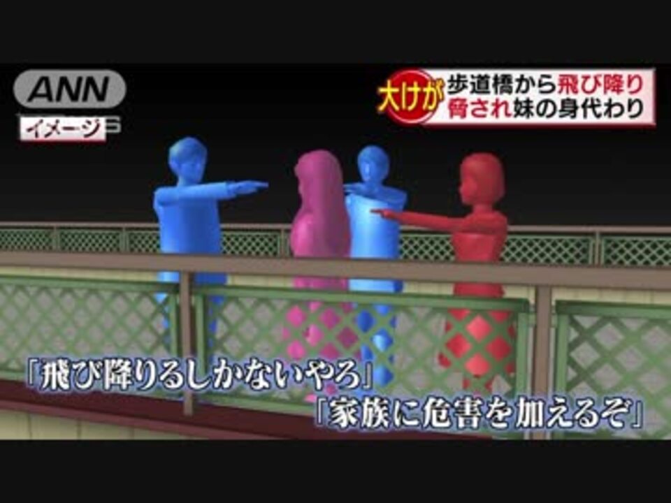 福岡県久留米市の駅前で1月23日深夜、通行中の男性が歩道橋から少女が転落したと警察に通報。警察によると、転落した少女は落ちる直前、3人の少年少女に取り囲まれて脅されていたという。3人に脅された少女は、地上から高さ約6メートルにある場所から飛び降り、全治3カ月の重傷を負った。歩道橋は高さ約6メートルで、ビル2階分にあたる高さだ。逮捕されたのは、中学生の少女と16歳と19歳の少年の3人。警察によると、飛び降りた少女は、妹が少年らと金銭トラブルになっていて、妹の代わりに呼び出しに応じたという。<br /><a href="http://news.livedoor.com/article/detail/14199334/" target="_blank" rel="noopener nofollow">http://news.livedoor.com/article/detail/14199334/</a>