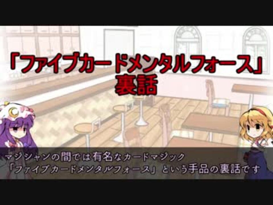 ゆっくり手品豆知識18回でやる予定だったネタです( ˘•ω•˘ )タネ明かし的な内容なので作成渋ってました。<br /><a href="https://www.nicovideo.jp/watch/sm32592104" class="watch">sm32592104</a>←前回 次回→<a href="https://www.nicovideo.jp/watch/sm32688656" class="watch">sm32688656</a><br /><br />このシリーズの<a href="https://www.nicovideo.jp/mylist/60880549" target="_blank" rel="noopener">mylist/60880549</a><br /><br />今まで作成したもの<a href="https://www.nicovideo.jp/mylist/49024562" target="_blank" rel="noopener">mylist/49024562</a><br />前シリーズ:ゆっくり手品にまつわる豆知識専用マイリス<a href="https://www.nicovideo.jp/mylist/53843399" target="_blank" rel="noopener">mylist/53843399</a><br />追記:mioさん、スレインさん、kowさん、三蔵法師αさん、みたみたさん、Xーneoさん、masaaki009さん、コスガーゼロさん、広告ありがとうございますヾ(⌒(_´ω`)_