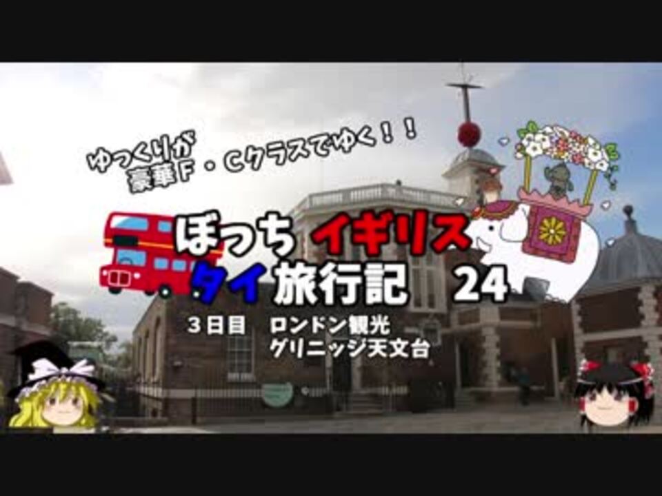 今回はグリニッジ天文台を紹介します!<br />世界標準時の時を刻む、あの天文台!<br />世界の真ん中、中心です!<br /><br />第一話→<a href="https://www.nicovideo.jp/watch/sm32025927" class="watch">sm32025927</a><br /><br />第1章・・・東京編<br />第2章・・・出発編<br />第3章・・・イギリス編<font color="red">←今ココ</font><br />第4章・・・移動編<br />第5章・・・タイ編<br />第6章・・・帰路編<br /><br /><font color="red">コミュ→co2910020</font><br />twitter→@ryontan<br /><br /><a href="https://www.nicovideo.jp/watch/sm32613137" class="watch">sm32613137</a>←前回 <font color="red">次回 25話→<a href="https://www.nicovideo.jp/watch/sm32648234" class="watch">sm32648234</a></font><br /><br />今作 イギリスタイ旅行記→<a href="https://www.nicovideo.jp/mylist/60044833" target="_blank" rel="noopener">mylist/60044833</a><br />今作 車中泊旅行記→<a href="https://www.nicovideo.jp/mylist/54706524" target="_blank" rel="noopener">mylist/54706524</a><br />前作 クルーズ旅行記→<a href="https://www.nicovideo.jp/mylist/57397685" target="_blank" rel="noopener">mylist/57397685</a><br />前々作 ドイツ周遊記→<a href="https://www.nicovideo.jp/mylist/54938346" target="_blank" rel="noopener">mylist/54938346</a><br />前々々作 北海道旅行記→<a href="https://www.nicovideo.jp/mylist/52618057" target="_blank" rel="noopener">mylist/52618057</a><br />