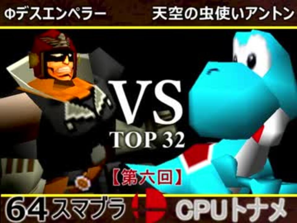 謎実況<br /><u>※どちらが勝つかアンケ結果(Twitter調べ)</u><br />Φデスエンペラー(FA) 61% VS 天空の虫使いアントン(YO) 39%<br /><br />【大会形式】ダブルイリミネーション方式トーナメント<br />・一度負けてもルーザーズ側を勝ち続ければ決勝に行ける<br /><br /><font color="#0000ff"><u>※64スマブラCPUトナメ実況のwikiができた模様</u>→</font> <a href="https://wiki3.jp/cpu_64" target="_blank" rel="noopener nofollow">https://wiki3.jp/cpu_64</a><br /><br /><b><font size="5"><font color="#ff0000">次→</font></font></b>【<a href="https://www.nicovideo.jp/watch/sm32665477" class="watch">sm32665477</a>】<br /><br />前【<a href="https://www.nicovideo.jp/watch/sm32653027" class="watch">sm32653027</a>】 一回戦第一試合【<a href="https://www.nicovideo.jp/watch/sm32538745" class="watch">sm32538745</a>】<br /><br />第六回マイリスト【<a href="https://www.nicovideo.jp/mylist/60846974" target="_blank" rel="noopener">mylist/60846974</a>】<br />64スマブラCPUトナメ実況part1まとめ【<a href="https://www.nicovideo.jp/mylist/60846861" target="_blank" rel="noopener">mylist/60846861</a>】<br />その他シリーズ【<a href="https://www.nicovideo.jp/mylist/12965027" target="_blank" rel="noopener">mylist/12965027</a>】<br /><br /><b><font color="#00bfff">Twitter</font></b>【@niconicopppppp】<br /><b><font color="#ff4500">チャンネル</font></b>【<a href="https://ch.nicovideo.jp/p-desu" target="_blank" rel="noopener">ch.nicovideo.jp/p-desu</a>】