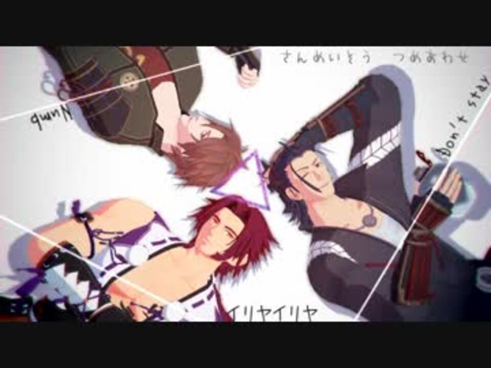 一覧_(:3 ⌒゙)_<br><br>00:00~ Don't stay<br>03:09~ Numb<br>06:22~ イリヤイリヤ<br>09:19~ 妄想税(一番のみ・クレジット一覧)<br>----------------------------------------<br>すら。様から<br>イリヤイリヤのモーションについて <a href="https://ch.nicovideo.jp/article/ar1384572" target="_blank" rel="noopener">ar1384572</a><br>(youtube: <a href="https://www.youtube.com/watch?v=IqWNF4Ateo4)" target="_blank" rel="noopener nofollow">https://www.youtube.com/watch?v=IqWNF4Ateo4)</a><br>----------------------------------------<br><br>三名槍に好きな曲やらせてみた.zip <br><br>連隊戦でようやくお迎えした号ちゃんに今度は6-4実家で号ちゃん探索させております。<br>----------------------------------------<br><br>今までつくったもの <a href="https://www.nicovideo.jp/mylist/60283941" target="_blank" rel="noopener">mylist/60283941</a><br><br>槍はいいぞさん、薩摩国審神者さん、豊後国さにわさん、豊後国審神者さん、備前の槍推しさん、mmmmさん、廃棄弁当1分前さん宣伝ありがとうございました!\('ω')/
