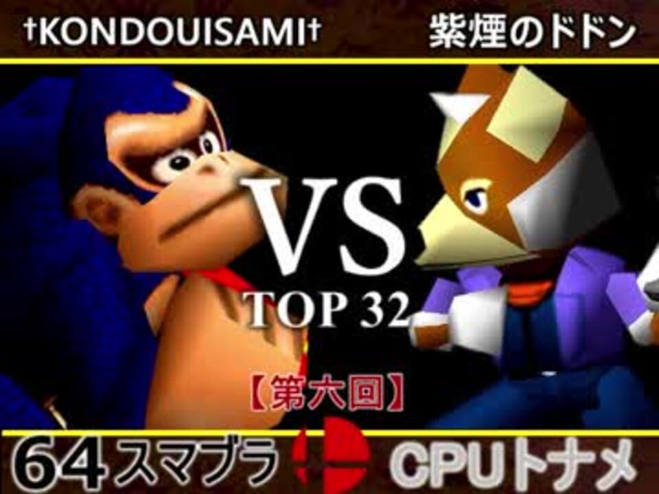 レベル9の†KONDOUISAMI†はどうだ<br /><u>※どちらが勝つかアンケ結果(Twitter調べ)</u><br />†KONDOUISAMI†(DK) 63% VS 紫煙のドドン(FO) 37%<br /><br />【大会形式】ダブルイリミネーション方式トーナメント<br />・一度負けてもルーザーズ側を勝ち続ければ決勝に行ける<br /><br /><font color="#0000ff"><u>※64スマブラCPUトナメ実況のwikiができた模様</u>→</font> <a href="https://wiki3.jp/cpu_64" target="_blank" rel="noopener nofollow">https://wiki3.jp/cpu_64</a><br /><br /><b><font size="5"><font color="#ff0000">次→</font></font></b>【<a href="https://www.nicovideo.jp/watch/sm32697431" class="watch">sm32697431</a>】<br /><br />前【<a href="https://www.nicovideo.jp/watch/sm32685889" class="watch">sm32685889</a>】 一回戦第一試合【<a href="https://www.nicovideo.jp/watch/sm32538745" class="watch">sm32538745</a>】<br /><br />第六回マイリスト【<a href="https://www.nicovideo.jp/mylist/60846974" target="_blank" rel="noopener">mylist/60846974</a>】<br />64スマブラCPUトナメ実況part1まとめ【<a href="https://www.nicovideo.jp/mylist/60846861" target="_blank" rel="noopener">mylist/60846861</a>】<br />その他シリーズ【<a href="https://www.nicovideo.jp/mylist/12965027" target="_blank" rel="noopener">mylist/12965027</a>】<br /><br /><b><font color="#00bfff">Twitter</font></b>【@niconicopppppp】<br /><b><font color="#ff4500">チャンネル</font></b>【<a href="https://ch.nicovideo.jp/p-desu" target="_blank" rel="noopener">ch.nicovideo.jp/p-desu</a>】
