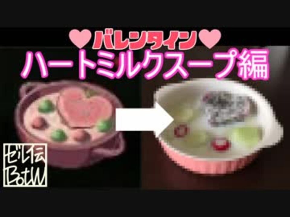 ゼルダの伝説ブレスオブザワイルド中に出てくる料理を、再現してみる企画です。<br /><font color="green">*BotW実況動画*</font>⇒<a href="https://www.nicovideo.jp/watch/sm30756073" class="watch">sm30756073</a><br /><br />●ゲーム中に使用する、最低限の素材以外は使わない。<br />●水と油は除外<br /><br />ちと早いですが、バレンタインにぴったりな料理を作っていきたいと思います!<br />素材の味を生かした簡単な料理で、ぜひ仲良くなってね♡<br /><br /><br />⇓こちらもどうぞ⇓<br />*サクラダダンス踊ってみた⇒<a href="https://www.nicovideo.jp/watch/sm31731371" class="watch">sm31731371</a>*<br />*羊毛フェルトでミファーちゃん作ってみた⇒<a href="https://www.nicovideo.jp/watch/sm32249666" class="watch">sm32249666</a>*<br /><br /><a href="https://www.nicovideo.jp/watch/sm32687459" class="watch">sm32687459</a>←前回 * <a href="https://www.nicovideo.jp/mylist/60942381" target="_blank" rel="noopener">mylist/60942381</a> * 次→<a href="https://www.nicovideo.jp/watch/sm32709855" class="watch">sm32709855</a><br />【実況part1リンク】<a href="https://www.nicovideo.jp/mylist/49817523" target="_blank" rel="noopener">mylist/49817523</a> * 【単発ごちゃまぜ】<a href="https://www.nicovideo.jp/mylist/53557943" target="_blank" rel="noopener">mylist/53557943</a><br />【コミュニティ】co2846362<br />【twitterID】kumituu_