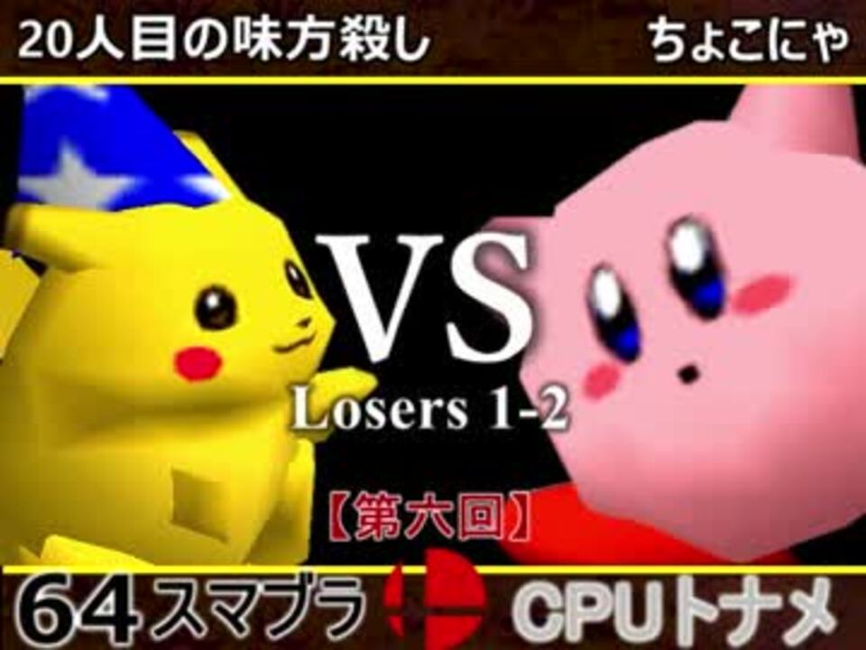 ちょこにゃの逆襲始まる<br /><u>※どちらが勝つかアンケ結果(Twitter調べ)</u><br />20人目の味方殺し(PI) 77% VS ちょこにゃ(KI) 23%<br /><br />【大会形式】ダブルイリミネーション方式トーナメント<br />・一度負けてもルーザーズ側を勝ち続ければ決勝に行ける<br /><br /><font color="#0000ff"><u>※64スマブラCPUトナメ実況のwikiができた模様</u>→</font> <a href="https://wiki3.jp/cpu_64" target="_blank" rel="noopener nofollow">https://wiki3.jp/cpu_64</a><br /><br /><b><font size="5"><font color="#ff0000">次→</font></font></b>【<a href="https://www.nicovideo.jp/watch/sm32708933" class="watch">sm32708933</a>】<br /><br />前【<a href="https://www.nicovideo.jp/watch/sm32706395" class="watch">sm32706395</a>】 一回戦第一試合【<a href="https://www.nicovideo.jp/watch/sm32538745" class="watch">sm32538745</a>】<br /><br />第六回マイリスト【<a href="https://www.nicovideo.jp/mylist/60846974" target="_blank" rel="noopener">mylist/60846974</a>】<br />64スマブラCPUトナメ実況part1まとめ【<a href="https://www.nicovideo.jp/mylist/60846861" target="_blank" rel="noopener">mylist/60846861</a>】<br />その他シリーズ【<a href="https://www.nicovideo.jp/mylist/12965027" target="_blank" rel="noopener">mylist/12965027</a>】<br /><br /><b><font color="#00bfff">Twitter</font></b>【@niconicopppppp】<br /><b><font color="#ff4500">チャンネル</font></b>【<a href="https://ch.nicovideo.jp/p-desu" target="_blank" rel="noopener">ch.nicovideo.jp/p-desu</a>】