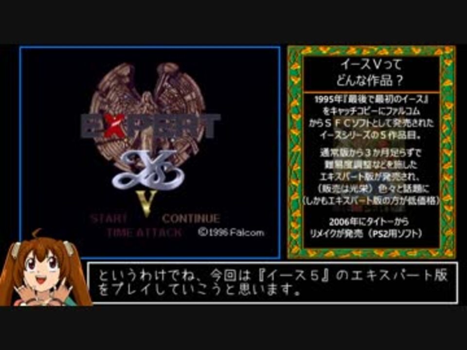 イースシリーズ第5弾はイース5です(普通)<br><br>環境:SFC実機<br> 計測開始:STARTを選択<br> 計測終了:ラスボスを倒した瞬間<br>ゲームスタート~ネード洞窟クリアまで<br><br>次:<a href="https://www.nicovideo.jp/watch/sm32714258" class="watch">sm32714258</a><br>イース5マイリス:<a href="https://www.nicovideo.jp/mylist/61010193" target="_blank" rel="noopener">mylist/61010193</a><br><br>RTA動画Part1集:<a href="https://www.nicovideo.jp/mylist/64219141" target="_blank" rel="noopener">mylist/64219141</a> <br><br>やまださん、バンダイナムコエンターテイメントさん、O2さん、todoさん、新発田頼子さん<br>yuma292さん、しゃいさん、シギ~さん、おうどんさん、むかっちさん、よたしろふさん<br>貴方のおケツにホイホイさん、有馬ゆうさん、しゃいさん、ソラさん<br>イースVIII 好評発売中さん、お茶の人98さん、みおさん、zzさん、masabladeさん<br>JAPANwebさん、くろぶたさん、TKNKさん、半キャラずらしさん、tkさん<br>対魔忍ダーナさん<br>宣伝ありがとうございます! 文字数制限の都合で以降の紹介はpart2にて