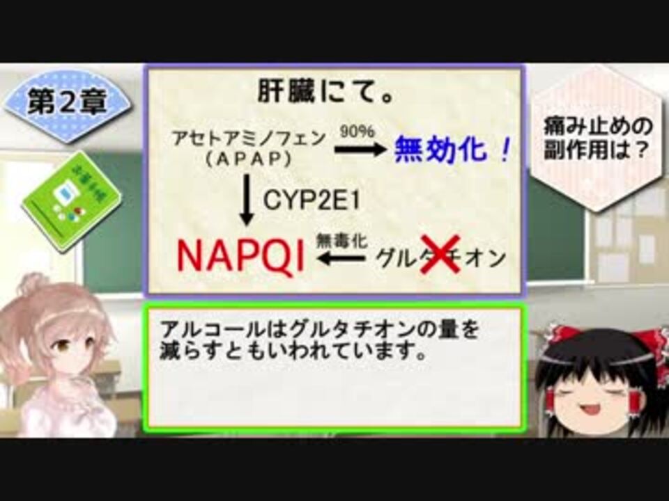前半はこちら→<a href="https://www.nicovideo.jp/watch/sm32677969" class="watch">sm32677969</a><br />コメ返し動画→<a href="https://www.nicovideo.jp/watch/sm32833974" class="watch">sm32833974</a><br /><br />せっかく720pで作ってるのにビットレートが足りなくて360pにしかならないの…<br /><br />☆本日のメニュー☆<br />2、痛み止めの副作用は?(後半)<br /><br />============ささらとゆっくり学ぶ薬学シリーズ============<br />使用ソフト:Aviutl、ゆっくりムービーメーカー、Cevio Creative Studio<br />マイリスト:<a href="https://www.nicovideo.jp/mylist/60951253" target="_blank" rel="noopener">mylist/60951253</a>/次回→<a href="https://www.nicovideo.jp/watch/sm32953419" class="watch">sm32953419</a><br />==================================================<br /><font color="#ff0000"><font size="3">※普段は実況動画を投稿しています。「解説動画だけ見たい!」という方はユーザーではなくマイリストをフォローすることをオススメします。</font></font><br />Twitter @Iwashi_bibili