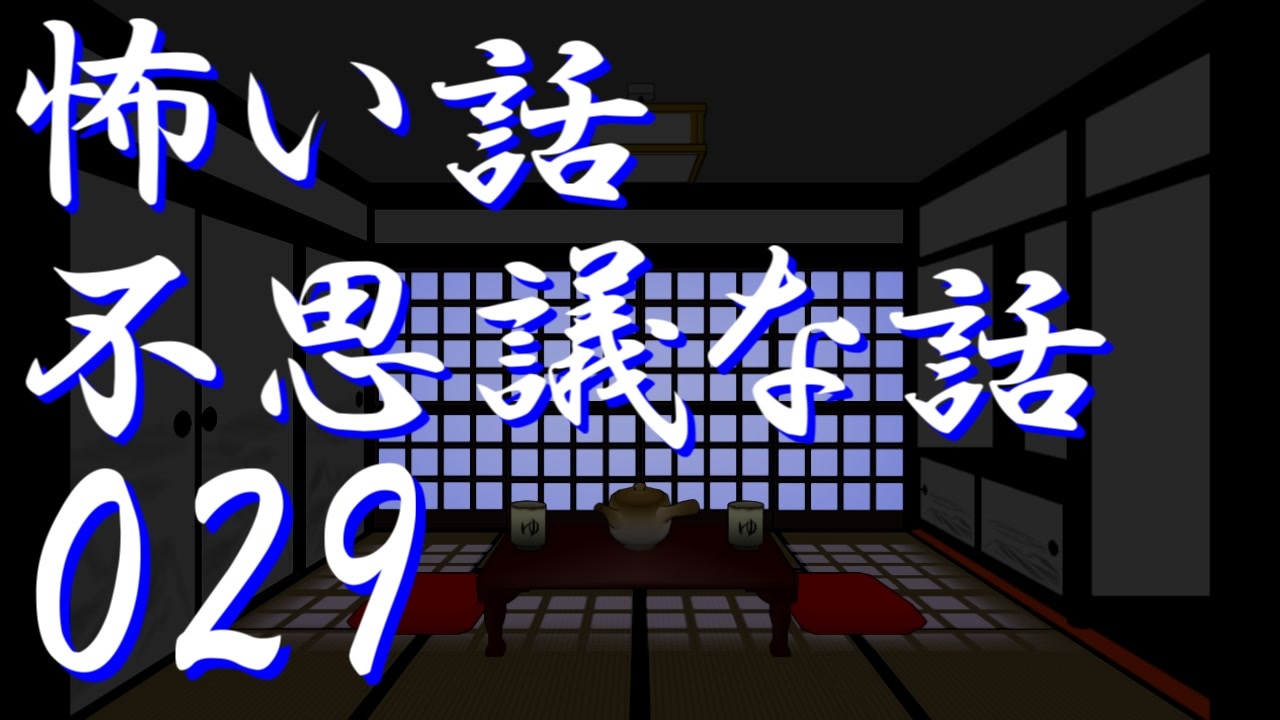 東方MMDの霊夢さんが読み上げる怖い話。動画は自動的に次に飛ぶようにします、自動的に飛ぶのが嫌な方はクレジットが表示されてる時に停止して下さい。<br>また、次の動画が無い場合最初の方のに戻ります。<br><br>怖い話 <a href="https://www.nicovideo.jp/mylist/50715008" target="_blank" rel="noopener">mylist/50715008</a> 少女の幽霊モデル→<a href="https://seiga.nicovideo.jp/seiga/im7787590" target="_blank" rel="noopener">im7787590</a> <a href="https://seiga.nicovideo.jp/seiga/im7787591" target="_blank" rel="noopener">im7787591</a><br>宣伝者様<br>ゲスト様、鰤様<br />━━━━━━━━━━━━━━━━━━━━━━━━━━━━━━<br><strong>背景フリー素材</strong> <a href="https://gska.hatenablog.jp/entry/GskSozaiya" target="_blank" rel="noopener nofollow">https://gska.hatenablog.jp/entry/GskSozaiya</a><br><br>すいません、宣伝者名記述は300pt以上です。<br>■■■■■■■■■■■■■■■■■■■■■■■■■■<br><span style="color: #0000ff;"><strong>怖い話不思議な話シリーズ1→<a href="https://www.nicovideo.jp/series/3376" target="_blank" rel="noopener">series/3376</a> 2→<a href="https://www.nicovideo.jp/series/71913" target="_blank" rel="noopener">series/71913</a></strong></span><br>■■■■■■■■■■■■■■■■■■■■■■■■■■<br><span style="color: #4a86e8;"><strong>東方キャラのゆっくりボイス設定 東方虹龍洞キャラあり</strong></span><br><a href="https://gska.hatenablog.jp/entry/yukkuri-touhou-voice" target="_blank" rel="noopener nofollow">https://gska.hatenablog.jp/entry/yukkuri-touhou-voice</a><br><br><span style="color: #4a86e8;"><strong>配布素材一覧</strong></span> <a href="https://gska.hatenablog.jp/entry/2019/11/10/222031" target="_blank" rel="noopener nofollow">https://gska.hatenablog.jp/entry/2019/11/10/222031</a><br><span style="color: #4a86e8;"><strong>素材利用規約</strong></span> <a href="https://gska.hatenablog.jp/entry/gsk-Material-rule" target="_blank" rel="noopener nofollow">https://gska.hatenablog.jp/entry/gsk-Material-rule</a><br>