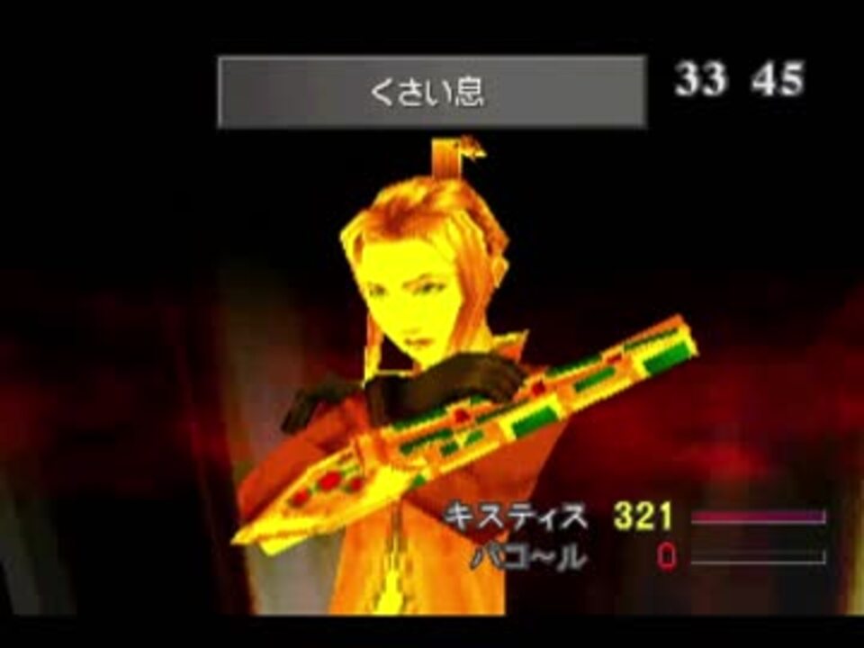 動画タイトルが100文字まで、動画説明文が1000文字まで入れられるようになったと聞いて、テスト動画を投稿してみました。<br />(参考)<a href="http://blog.nicovideo.jp/niconews/63263.html" target="_blank" rel="noopener nofollow">http://blog.nicovideo.jp/niconews/63263.html</a><br /><br />本動画は元々は「FF8を序盤からできるだけ最強にして無双していく」というシリーズものとして投稿しようと考えて途中までプレイ&録画していたものの、ありきたりで他の人ともネタが被っていることに気づいたためお蔵入りしたものの一部となっています。<br /><br /><b>(補足説明)</b><br />FF8はG.F.ケツァクウァトルが習得する「カード変化」を利用することで、序盤から味方を強化することができます。<br /><br />具体的には、最初のダンジョンである炎の洞窟に入る前に、以下のようなことが可能です。<br />●スコールの武器をクライム&ペナルティ(最強武器の一つ前)にする<br />●キスティスの武器をセイブ・ザ・クイーン(最強武器)にする<br />●トルネド、ブリザガ、サンダガ、ウォータ等ジャンクション効果の高い魔法を精製する<br />●キスティスに青魔法を習得させる<br /> ・メーザーアイ(初期から習得)<br /> ・超振動<br /> ・電撃<br /> ・レベル?デス<br /> ・デジョネーター<br /> ・アクアブレス<br /> ・溶解液<br /> ・ファイヤーブレス<br /> ・ガトリング砲<br /> <font color="ff0000" size="5">・くさい息</font><br /> ・マイティガード<br /><br /><b>【動画シリーズ】<br /></b>◆FF7英字・カタカナ禁止で低レベルクリア:<a href="https://www.nicovideo.jp/watch/sm32356994" class="watch">sm32356994</a><br />◆3つのボタンでFF5:<a href="https://www.nicovideo.jp/watch/sm30938242" class="watch">sm30938242</a><br />◆FF8最少コマンド入力回数クリアに挑戦:<a href="https://www.nicovideo.jp/watch/sm29792055" class="watch">sm29792055</a><br />◆石橋を叩いてFF4:<a href="https://www.nicovideo.jp/watch/sm25971042" class="watch">sm25971042</a><br />◆FF8ノージャンクンション1人旅+α:<a href="https://www.nicovideo.jp/watch/sm27238226" class="watch">sm27238226</a><br /><br /><b>【他の単発動画】</b><br /><a href="https://www.nicovideo.jp/mylist/50810384" target="_blank" rel="noopener">mylist/50810384</a><br /><br /><b>【twitter】</b><br />@shelfall<br /><br />すげぇ!まだ書けるのか!1000文字ってすげぇ!セルフィのパンt