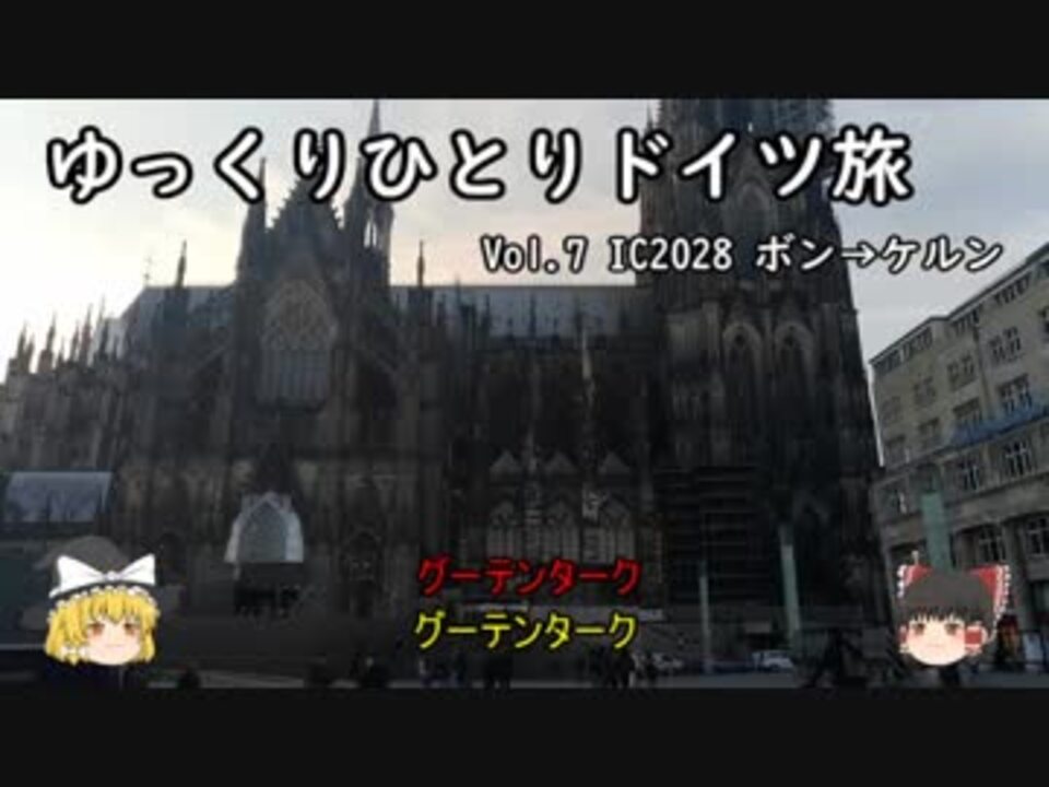 年末のドイツ旅行の動画の続きです。<br />今回は、ボンからケルン駅到着です。<br />駅を降りると、ケルン大聖堂が見えました。その壮大さに心惹かれます<br /><br />前の動画 Vol.6 <a href="https://www.nicovideo.jp/watch/sm32729559" class="watch">sm32729559</a> ← 本作 → 次の動画 Vol.8 <a href="https://www.nicovideo.jp/watch/sm32765503" class="watch">sm32765503</a><br />バンコク旅・台湾旅もよろしくお願いいたします。<br />ドイツ旅 マイリスト <a href="https://www.nicovideo.jp/mylist/60902323" target="_blank" rel="noopener">mylist/60902323</a><br />バンコク旅 マイリスト <a href="https://www.nicovideo.jp/mylist/60140061" target="_blank" rel="noopener">mylist/60140061</a><br />台湾旅 マイリスト <a href="https://www.nicovideo.jp/mylist/60522534" target="_blank" rel="noopener">mylist/60522534</a><br /><br />いつも、広告ありがとうございます。