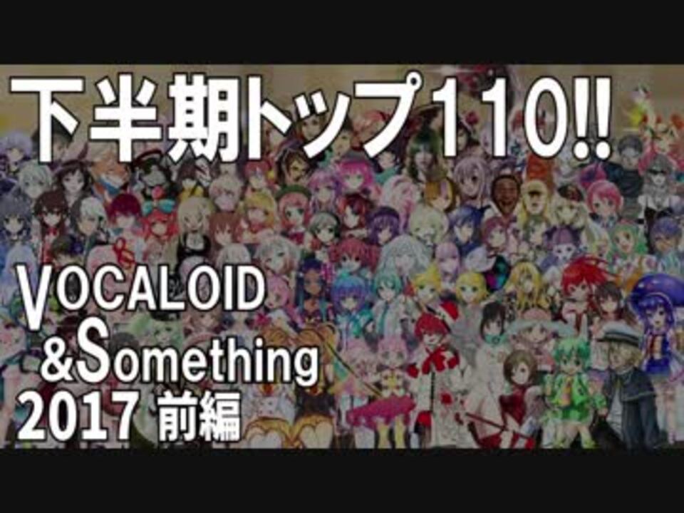 後編 <a href="https://www.nicovideo.jp/watch/sm32760334" class="watch">sm32760334</a><br /><br />プレイリスト <a href="https://ch.nicovideo.jp/article/ar1425096" target="_blank" rel="noopener">ar1425096</a> (1位~110位) <a href="https://ch.nicovideo.jp/article/ar1426146" target="_blank" rel="noopener">ar1426146</a> (111位~500位)<br />※プレイリスト内で動画IDを検索できます。<br /><br />対象:2017年7月1日~12月31日投稿<br />集計時刻:2018年2月1日5時(APIスナップショット)<br />計算式:再生数+コメント数×10+マイリスト数×30<br />集計タグ:「VOCALOID」「UTAU」「CeVIO」「VOICEROID」<br />「Cevioカバー曲」「CeVIOオリジナル曲」「VOCALOID→CeVIOカバー曲」<br />「トークロイド」「HANASU」「歌うボイスロイド」<br />詳しくは動画をご覧ください。<br /><br />→後編 <a href="https://www.nicovideo.jp/watch/sm32760334" class="watch">sm32760334</a><br /><br />「日刊ランキングVOCALOID&something」 <a href="https://www.nicovideo.jp/mylist/47849908" target="_blank" rel="noopener">mylist/47849908</a> <br />日刊の他には、こんなことやってます <a href="https://www.nicovideo.jp/mylist/13592044" target="_blank" rel="noopener">mylist/13592044</a> <br />BGM「Shiny Days」 <a href="https://www.nicovideo.jp/watch/sm27500345" class="watch">sm27500345</a> <br /><br />作品投稿者様へ:コンテンツツリーは1位~200位は前編、201位~500位を後編に登録させていただきます(登録可能件数が1本につき300件のため)。<br />前編のコンテンツツリーに登録されていても紹介は後編で行われている場合があります。<br />順位はプレイリストからご確認ください。