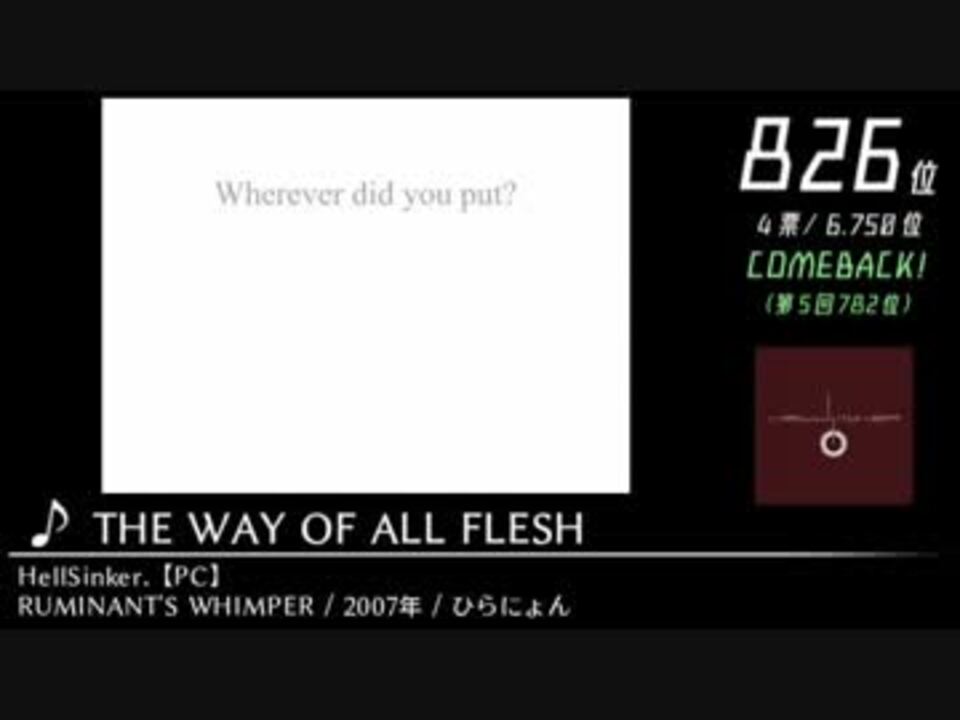 第◯回以来のCOMEBACKと言いつつ、実はゲー音ランキング動画に収録されるのは初めて、<br>という曲は結構あるんじゃなかろうか?<br><br>■諸般のお知らせ<br><br>・ネタバレの宝庫ですので心してください<br><br>・Part1ぶりに収録時間90分超となっています。ゆるりとご視聴ください<br><br>・<a href="#" class="seekTime" data-seekTime="19:20" onclick="seekNicoPlayer('#19:20'); return false;">#19:20</a>~:スクショの切り替え演出を、出典元ゲームに可能な限り寄せたものとしています<br><br>・<a href="#" class="seekTime" data-seekTime="32:41" onclick="seekNicoPlayer('#32:41'); return false;">#32:41</a>~:<br> フリー楽曲ですが、作曲者のサイトが閉鎖されております。<br> 曲のDLもできませんが、ウェブアーカイブでサイトの閲覧は可能なので、<br> マイリスコメにそちらのURLを記載します<br><br>・<a href="#" class="seekTime" data-seekTime="69:10" onclick="seekNicoPlayer('#69:10'); return false;">#69:10</a>~:音源にミスがあったため、補遺編 (<a href="https://www.nicovideo.jp/watch/sm34859502" class="watch">sm34859502</a>) にて再収録します<br><br>■SSの送付先など:<a href="https://ch.nicovideo.jp/article/ar1374199" target="_blank" rel="noopener">ar1374199</a><br><br>part6:<a href="https://www.nicovideo.jp/watch/sm32724059" class="watch">sm32724059</a><br>part8:<a href="https://www.nicovideo.jp/watch/sm32835690" class="watch">sm32835690</a><br><br>マイリスト:<a href="https://www.nicovideo.jp/mylist/60442049" target="_blank" rel="noopener">mylist/60442049</a><br>