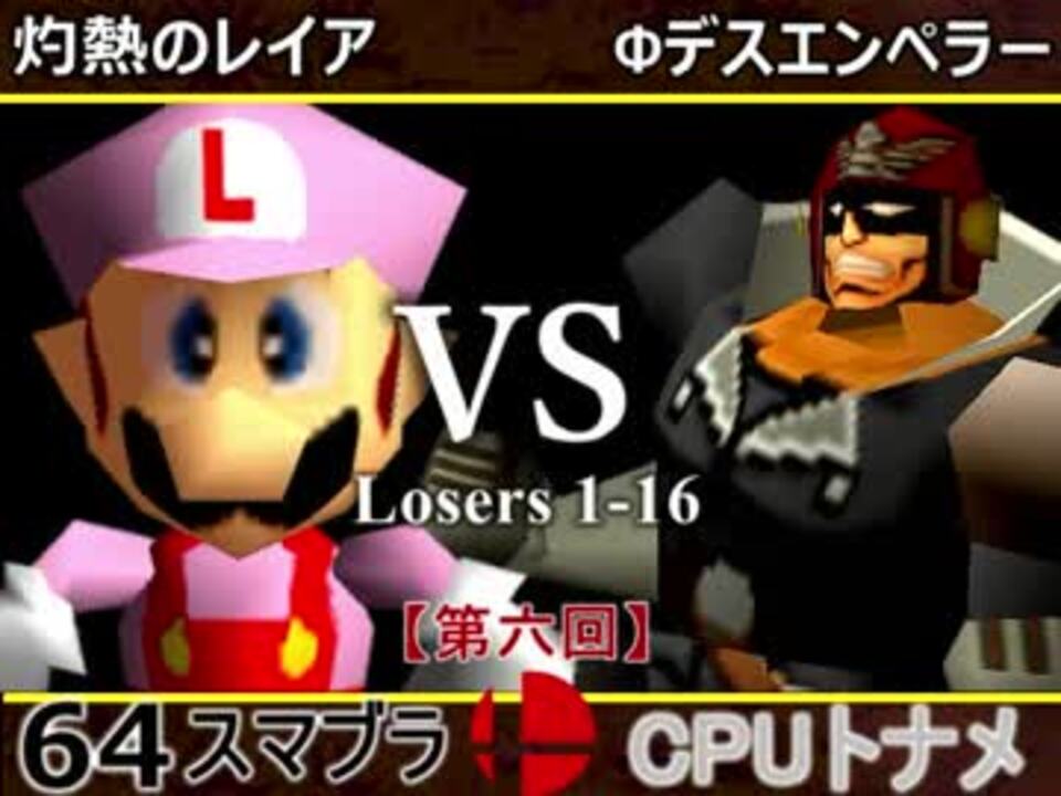 最古参の実力者同士の対決!!!<br /><u>※どちらが勝つかアンケ結果(Twitter調べ)</u><br />灼熱のレイア(LU) 76% VS Φデスエンペラー(FA) 24%<br /><br />【大会形式】ダブルイリミネーション方式トーナメント<br />・一度負けてもルーザーズ側を勝ち続ければ決勝に行ける<br /><br /><font color="#0000ff"><u>※64スマブラCPUトナメ実況のwikiができた模様</u>→</font> <a href="https://wiki3.jp/cpu_64" target="_blank" rel="noopener nofollow">https://wiki3.jp/cpu_64</a><br /><br /><b><font size="5"><font color="#ff0000">次→</font></font></b>【<a href="https://www.nicovideo.jp/watch/sm32788720" class="watch">sm32788720</a>】<br /><br />前【<a href="https://www.nicovideo.jp/watch/sm32777181" class="watch">sm32777181</a>】 一回戦第一試合【<a href="https://www.nicovideo.jp/watch/sm32538745" class="watch">sm32538745</a>】<br /><br />第六回マイリスト【<a href="https://www.nicovideo.jp/mylist/60846974" target="_blank" rel="noopener">mylist/60846974</a>】<br />64スマブラCPUトナメ実況part1まとめ【<a href="https://www.nicovideo.jp/mylist/60846861" target="_blank" rel="noopener">mylist/60846861</a>】<br />その他シリーズ【<a href="https://www.nicovideo.jp/mylist/12965027" target="_blank" rel="noopener">mylist/12965027</a>】<br /><br /><b><font color="#00bfff">Twitter</font></b>【@niconicopppppp】<br /><b><font color="#ff4500">チャンネル</font></b>【<a href="https://ch.nicovideo.jp/p-desu" target="_blank" rel="noopener">ch.nicovideo.jp/p-desu</a>】
