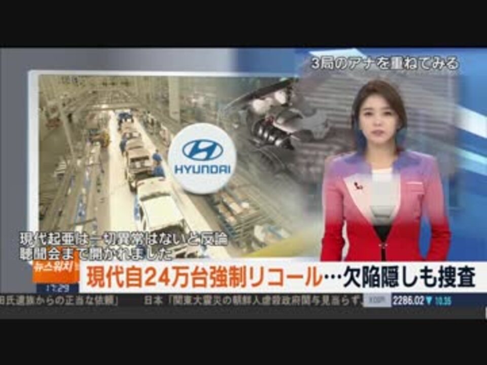 日本国外では結構大きな扱いなんですが、国内メディアは“忖度“して扱わないので勝手に輸入します。<br>ついでに、KBS・SBS・聯合ニュースの女子アナ三人をじっくり比較・・・。なッなんだってェー!!<br><br>現代自もゾンビ企業化が確定して、めでたい限りです。<br>投稿動画一覧 <a href="https://www.nicovideo.jp/mylist/59961208" target="_blank" rel="noopener">mylist/59961208</a><br />ネタばかり溜まるも仕事がぐっちゃっぐちゃで全然編集ができません。<br><br>数ヶ月かけて何度か渡韓しましたが、レッカー屋の取材成果としては実質ゼロの状況です。<br>気長にお待ちください・・・。<br>引き続き、どうぞよしなに。