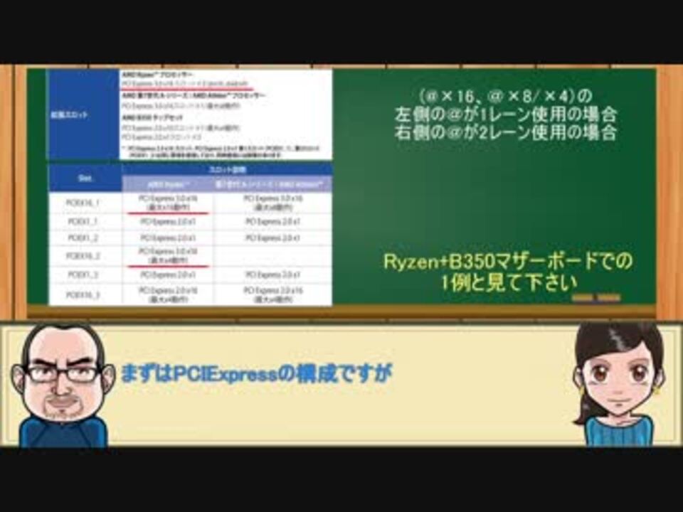 <font color="#ff0000"><font size="4"><b>この動画は2018年2月時点の情報をもとに作っています</b></font></font><br /><br /><font size="4"><b>これからパソコンを作ってみたい方やまだよく解っていない方の助けになればと思い作りました。</b></font><br /><br /><font size="4"><b>今回はマザーボード・購入編となります。</b></font><br /><font size="4"><b>Intelは100~300シリーズの解説となってます。</b></font><br /><br /><font size="4"><b>マザーボード編いよいよ終了、次回はメモリー編の予定</b></font><br /><br /><font size="4">動画主もまだまだ勉強中ですが、質問やご指摘が有れば、よろしくお願いします。</font><br /><br />前回・・<a href="https://www.nicovideo.jp/watch/sm32771903" class="watch">sm32771903</a>|次回・・<a href="https://www.nicovideo.jp/watch/sm32837707" class="watch">sm32837707</a><br />番外編・周波数と転送速度・・<a href="https://www.nicovideo.jp/watch/sm32788352" class="watch">sm32788352</a><br />PCパーツを買いに行こう:マイリスト・・<a href="https://www.nicovideo.jp/mylist/60905756" target="_blank" rel="noopener">mylist/60905756</a><br /><br />パソコンを作ろう:マイリスト・・<a href="https://www.nicovideo.jp/mylist/60751381" target="_blank" rel="noopener">mylist/60751381</a><br /><br />Twitterでの質問も受け付けていますのでよろしければフォローお願いします<br /><a href="https://twitter.com/6NEdj3XbpmzjDGg" target="_blank" rel="noopener nofollow">https://twitter.com/6NEdj3XbpmzjDGg</a><br />