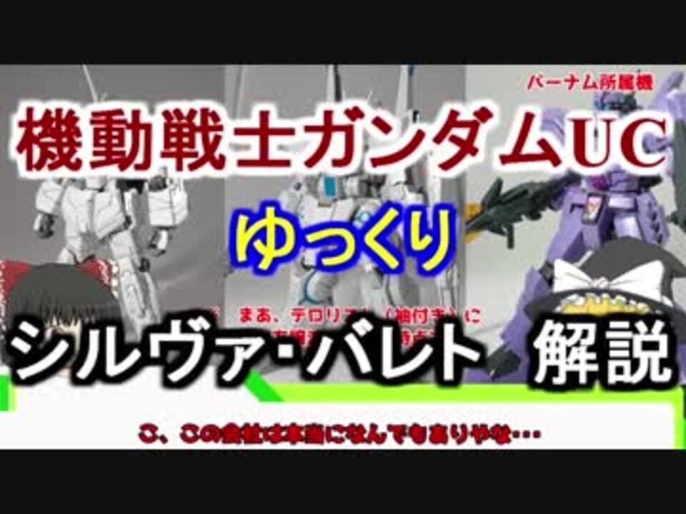 ゆっくり解説動画をご覧頂きありがとうございます<br><br>第19回 ARX-014 シルヴァ・バレト になりますので温かい目でご覧ください<br><br>前→<a href="https://www.nicovideo.jp/watch/sm32781807" class="watch">sm32781807</a> 次→<a href="https://www.nicovideo.jp/watch/sm32824952" class="watch">sm32824952</a><br><br>マイリスト→<a href="https://www.nicovideo.jp/mylist/60561611" target="_blank" rel="noopener">mylist/60561611</a><br><br>ラプラス戦争から数ヵ月後 のMS解説→<a href="https://www.nicovideo.jp/watch/sm31388998" class="watch">sm31388998</a><br><br>逆襲のシャアMS、MA解説→<a href="https://www.nicovideo.jp/mylist/60272984" target="_blank" rel="noopener">mylist/60272984</a><br><br><br>今まで投稿した動画→<a href="https://www.nicovideo.jp/mylist/28583653" target="_blank" rel="noopener">mylist/28583653</a><br><br>youtubeチャンネル<br>シュウ部屋ちゃんねる で検索!<br><br>ご意見ご感想はこちらへ<br>ニコニココミュ→co2996802<br><br>沢山の宣伝有難う御座います。宣伝者様一覧 <a href="https://ch.nicovideo.jp/article/ar1458212" target="_blank" rel="noopener">ar1458212</a>