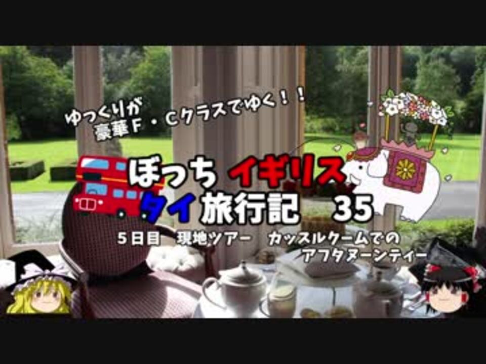 今回は本場イギリス、そしてマナーハウスで<br />フルアフタヌーンティーを頂きます!<br />今回のツアーの売りの一つでもあります。<br />まさにゴージャス、英国貴族になったかのようなひと時でしたよ!<br /><br />第一話→<a href="https://www.nicovideo.jp/watch/sm32025927" class="watch">sm32025927</a><br /><br />第1章・・・東京編<br />第2章・・・出発編<br />第3章・・・イギリス編<font color="red">←今ココ</font><br />第4章・・・移動編<br />第5章・・・タイ編<br />第6章・・・帰路編<br /><br /><font color="red">コミュニティー→co2910020</font><br />twitter→<a href="https://twitter.com/ryontan" target="_blank" rel="noopener nofollow">https://twitter.com/ryontan</a><br /><br /><a href="https://www.nicovideo.jp/watch/sm32810472" class="watch">sm32810472</a>←前回 <font color="red">次回 36話→<a href="https://www.nicovideo.jp/watch/sm32847410" class="watch">sm32847410</a></font><br /><br />今作 イギリスタイ旅行記→<a href="https://www.nicovideo.jp/mylist/60044833" target="_blank" rel="noopener">mylist/60044833</a><br />今作 車中泊旅行記→<a href="https://www.nicovideo.jp/mylist/54706524" target="_blank" rel="noopener">mylist/54706524</a><br />前作 クルーズ旅行記→<a href="https://www.nicovideo.jp/mylist/57397685" target="_blank" rel="noopener">mylist/57397685</a><br />前々作 ドイツ周遊記→<a href="https://www.nicovideo.jp/mylist/54938346" target="_blank" rel="noopener">mylist/54938346</a><br />前々々作 北海道旅行記→<a href="https://www.nicovideo.jp/mylist/52618057" target="_blank" rel="noopener">mylist/52618057</a>