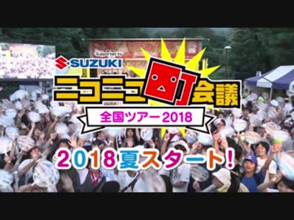 <br>「あなたの町のニコニコに会いに行く」を合言葉に、<br>「超会議」を日本全国の皆さんにお届けする「ニコニコ町会議」の開催が決定しました!<br><br>2018年の会場数は昨年のだいたい“2倍”!できるだけ多くの人に楽しんでいただけるよう、多くの町におじゃまします!<br><br>開催地はニコニコユーザーのみなさんからの推薦によって決まります。<br>「ニコニコ町会議を自分の住む町で開催してほしい!」という方は、是非ご応募ください!<br>今年はツイッターからも応募できます!<br><br><b>▼詳しくはニコニコ町会議 2018 公式サイトをご覧ください。</b><br><a href="http://chokaigitour.jp/">http://chokaigitour.jp/</a>