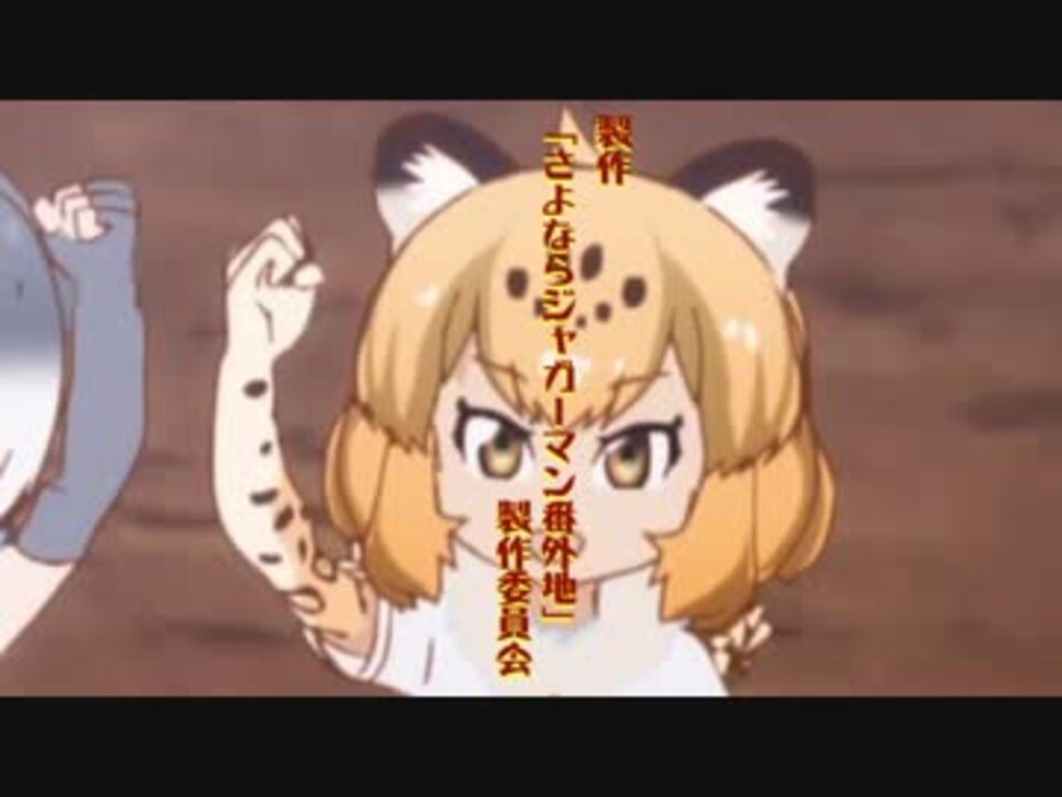 前回までのあらすじ<br />「ジャガー神社建設反対!ジャガー神社建設反対!」<br />大沢たかおが勤務する聖・ジャガーマンシリーズ学院の外では、連日学院の理事長が推し進めるジャガー神社建設に反対するデモが行われていた。<br />デモはセルリアンとよばれる反ジャガーマンシリーズ団体が関わっているらしい。<br />そんな情報がもたらされる。<br />理事長は愛人である大沢たかおに潜入捜査を命じる。<br />たかおは己にセルリアン創設者のみんみ神を憑依させ、団体幹部にまで登り詰めた。<br />反対組織の掌握に成功してジャガー神社建設を加速させる理事長に一発の凶弾が…!<br />本妻のTSUYOSHIといつまでも別れないことに憤った大沢たかおが放った物だった。<br /><br />被り元動画?→<a href="https://www.nicovideo.jp/watch/sm32102536" class="watch">sm32102536</a><br />前作(<a href="https://www.nicovideo.jp/watch/sm32877038" class="watch">sm32877038</a>)<br />次作(<a href="https://www.nicovideo.jp/watch/sm32968733" class="watch">sm32968733</a>)<br />制作物(<a href="https://www.nicovideo.jp/mylist/59597245" target="_blank" rel="noopener">mylist/59597245</a>)<br /><font size="1">製作 「さよならジャガーマン番外地」製作委員会</font><br />