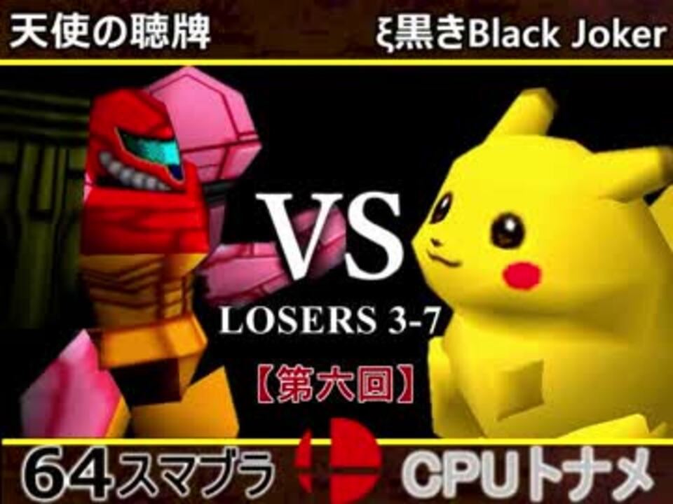 正統派な対決<br />※どちらが勝つかアンケ結果(Twitter調べ)<br />天使の聴牌(SA) 25% VS ξ黒きBlack Joker(PI) 75% <br /> <br />【大会形式】ダブルイリミネーション方式トーナメント<br />・一度負けてもルーザーズ側を勝ち続ければ決勝に行ける<br /><br /><font color="#0000ff"><u>※64スマブラCPUトナメ実況のwikiができた模様</u>→</font> <a href="https://wiki3.jp/cpu_64" target="_blank" rel="noopener nofollow">https://wiki3.jp/cpu_64</a><br /><br /><b><font size="5"><font color="#ff0000">次→</font></font></b>【<a href="https://www.nicovideo.jp/watch/sm32910048" class="watch">sm32910048</a>】<br /><br />前【<a href="https://www.nicovideo.jp/watch/sm32899618" class="watch">sm32899618</a>】 一回戦第一試合【<a href="https://www.nicovideo.jp/watch/sm32538745" class="watch">sm32538745</a>】<br /><br />第六回マイリスト【<a href="https://www.nicovideo.jp/mylist/60846974" target="_blank" rel="noopener">mylist/60846974</a>】<br />64スマブラCPUトナメ実況part1まとめ【<a href="https://www.nicovideo.jp/mylist/60846861" target="_blank" rel="noopener">mylist/60846861</a>】<br />その他シリーズ【<a href="https://www.nicovideo.jp/mylist/12965027" target="_blank" rel="noopener">mylist/12965027</a>】<br /><br /><b><font color="#00bfff">Twitter</font></b>【@niconicopppppp】<br /><b><font color="#ff4500">チャンネル</font></b>【<a href="https://ch.nicovideo.jp/p-desu" target="_blank" rel="noopener">ch.nicovideo.jp/p-desu</a>】
