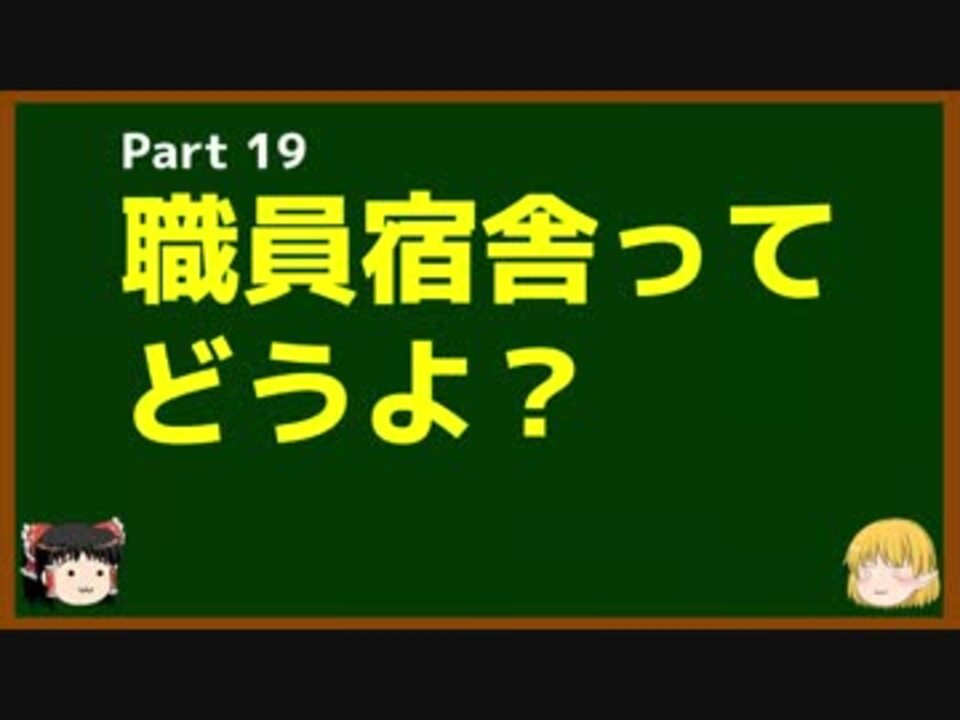Part1 <a href="https://www.nicovideo.jp/watch/sm31485907" class="watch">sm31485907</a>|前 <a href="https://www.nicovideo.jp/watch/sm32869500" class="watch">sm32869500</a>|次 <a href="https://www.nicovideo.jp/watch/sm32927227" class="watch">sm32927227</a>|動画リスト <a href="https://www.nicovideo.jp/mylist/59408179" target="_blank" rel="noopener">mylist/59408179</a><br />コミュ co3565493<br />Kindle版 <a href="https://amazon.jp/dp/B00HGEOTZK" target="_blank" rel="noopener nofollow">https://amazon.jp/dp/B00HGEOTZK</a> (Unlimited対象)<br /><br />任期制の場合職員宿舎に住むことは<br />収入源も住居も勤め先に依存することになるので,<br />一か所に依存先が集中しすぎのおそれがあります。<br />”職住近接”も災害を考慮するとできれば満たしたい点です。<br /><br />職員宿舎は安かろう悪かろうになりかねないので注意が必要です。<br /><br />動画内に示した参考資料:<br />▼職員宿舎情報,熊本大学<br /><a href="http://www.kumamoto-u.ac.jp/daigakujouhou/shisetu/shokuin_shukusha/shukusha" target="_blank" rel="noopener nofollow">http://www.kumamoto-u.ac.jp/daigakujouhou/shisetu/shokuin_shukusha/shukusha</a><br />▼山崎元:転職哲学,かんき出版 (2004)<br /><br />■BGM<br />夜明けに響く歌,作曲:Napi<br />M-ART<br /><a href="http://mart.kitunebi.com" target="_blank" rel="noopener nofollow">http://mart.kitunebi.com</a><br /><br />■効果音<br />小鼓(こづつみ)<br />効果音ラボ<br /><a href="http://soundeffect-lab.info/sound/anime/" target="_blank" rel="noopener nofollow">http://soundeffect-lab.info/sound/anime/</a><br /><br />■Twitter @nobu8aoki<br />■ブログ <a href="http://www.panoramic-view.info/category/blog/edu/" target="_blank" rel="noopener nofollow">http://www.panoramic-view.info/category/blog/edu/</a><br />■ブロマガ <a href="https://ch.nicovideo.jp/nobu8" target="_blank" rel="noopener">ch.nicovideo.jp/nobu8</a>