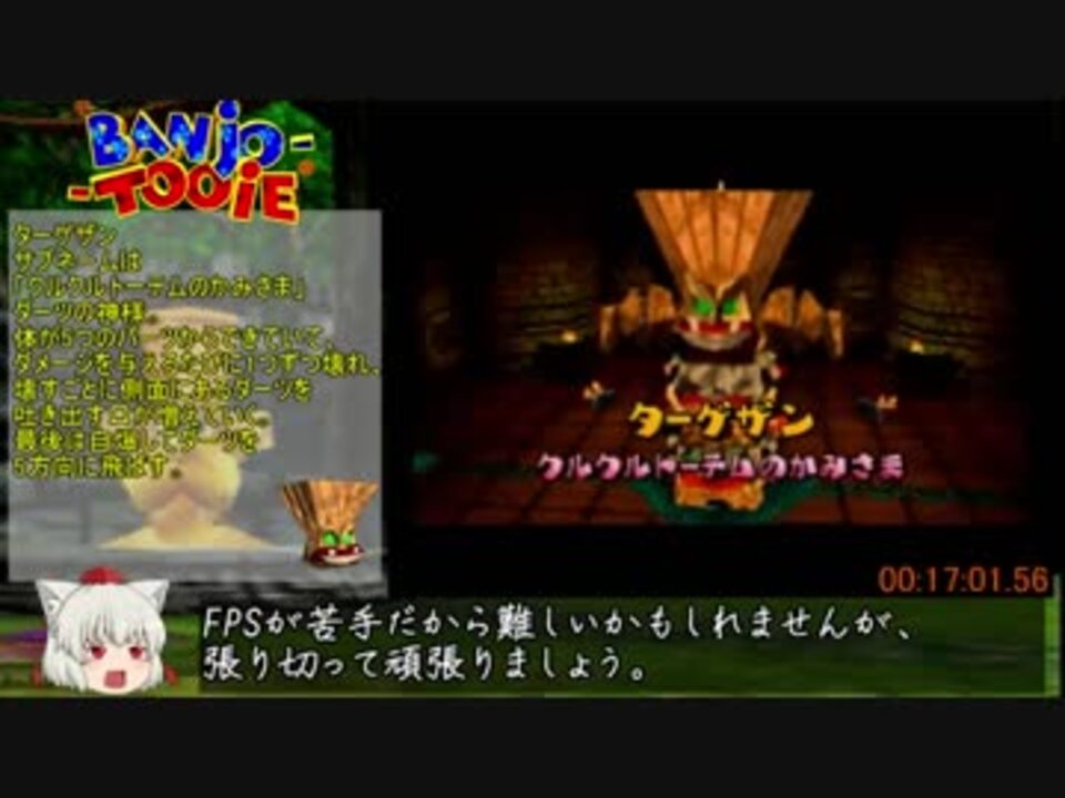 <font color="#6d9eeb"><font size="4">日本語版なのでできない技が多いです。でも致命的ではないので</font><br /><font size="4">海外ルートを参考に日本版ルート作りました。</font></font><br /><font size="4"><font color="#efefef"><b>日本語ガバガバになったら忙しいんだなと思ってください<br />早速作った動画を見てたらガバってましたすいません許してください</b></font><br /></font>任天堂64のレア社製ゲームのRTAについてまとめてます。<br />N64レア社ディスコード:N64レア社鯖:<a href="https://t.co/rO2pUSktj1" target="_blank" rel="noopener nofollow">https://t.co/rO2pUSktj1</a><br />興味ある人は参加してどうぞ (参加するだけなら無料だゾ)<br />Twiiter:@Arten0104<br />このコミュニティで練習やRTAをしています:co3467849<br />次>>><a href="https://www.nicovideo.jp/watch/sm32982023" class="watch">sm32982023</a><br />投稿した解説RTAPart1リンクまとめ:<a href="https://www.nicovideo.jp/mylist/61360648" target="_blank" rel="noopener">mylist/61360648</a><br />バンカズ2のマイリス:<a href="https://www.nicovideo.jp/mylist/61360682" target="_blank" rel="noopener">mylist/61360682</a><br />ジンジョー厳選についてはこ↑こ↓:<a href="https://www.nicovideo.jp/watch/sm29501660" class="watch">sm29501660</a><br />ムツノ 兄貴yui さんちぇるの 兄貴サタンサンタ 兄貴うに 兄貴makki- 兄貴Εques 兄貴万丈龍我 兄貴ゆとりん 兄貴モタリケ 兄貴たちつてと 兄貴番狼くぅ 兄貴SHimoNs 兄貴saka 兄貴流行る 兄貴LNTakeshi 兄貴ふぁびっと 兄貴163 兄貴cecile 兄貴コウスケ兄貴風花 兄貴<br />グルル 兄貴 えのしと 兄貴 ROM<font color="#262626">虐待おじ兄貴</font> 飛翔するG 兄貴 チューティ 兄貴 ゲスト 兄貴 kitakote 兄貴 リュウオーン 兄貴 らいあ 兄貴 Hey 兄貴変態糞火竜 兄貴 とよまな 兄貴 niedle 兄貴 SHILUBA 兄貴オルゴ・デミーラ 兄貴 イオンヌーナ 兄貴伊藤園 兄貴イオンヌーナ 兄貴<font color="#ff0000">ボトルズ 僕を助けて下さいね!←ないです </font>番狼くぅ 兄貴うに 兄貴 あるてん 兄貴<br />広告ありがとうございました!