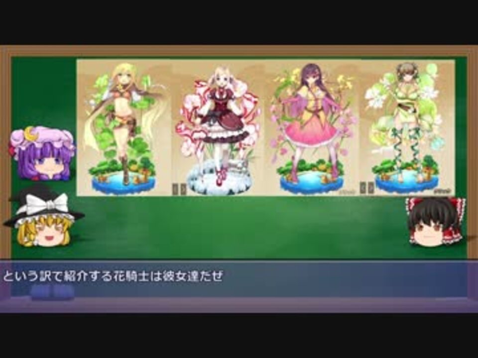 この動画はフラワーナイトガールに登場する花騎士達を程々に紹介する動画になります<br /><br />緊急速報です<br />前回の動画再生時にスプリングガーデンで局地的な強い揺れを複数回観測しました。この揺れによる被害は確認されていませんが調査に向かった騎士団によると震源地と思われる場所から2つの男女と思われるまんじゅうの破片が見つかりました。破片は特定するのが困難なほど破損しており、身元確認には時間が掛かるようです。この事件に対して専門家のゆっくりM氏は「これが越えてはいけない一線を越えた者達の末路だぜ」、ゆっくりP氏は「これが愛の力なのね」とコメントしており、謎は深まるばかりです…<br /><br />というニュース風の茶番を動画冒頭に入れようと考えましたが時間が掛かるんで止めました。<font color="#d9d9d9">途中で面倒になった</font><br />あ、今日のテーマは「バナナオーシャン所属で私が最初に思い浮かんだ花騎士達」です。彼女達のグループに名称を付けようと思ったけど思い浮かばなかったからこうなりました。センスないから仕方ないね<br /><br />前のページ<a href="https://www.nicovideo.jp/watch/sm32824835" class="watch">sm32824835</a> 次のページ<a href="https://www.nicovideo.jp/watch/sm33004316" class="watch">sm33004316</a><br />目次 <a href="https://www.nicovideo.jp/mylist/60396224" target="_blank" rel="noopener">mylist/60396224</a><br />動画作成に用いているもの<a href="https://www.nicovideo.jp/mylist/60396252" target="_blank" rel="noopener">mylist/60396252</a> <br /><br />フラワーナイトガール公式→<a href="http://www.dmm.com/netgame_s/flower/" target="_blank" rel="noopener nofollow">http://www.dmm.com/netgame_s/flower/</a><br />この動画はフラワーナイトガールの「二次創作のガイドライン」、並びに「二次利用のガイドライン」に則り製作しております。<br />『フラワーナイトガール』(C) DMMゲームズ