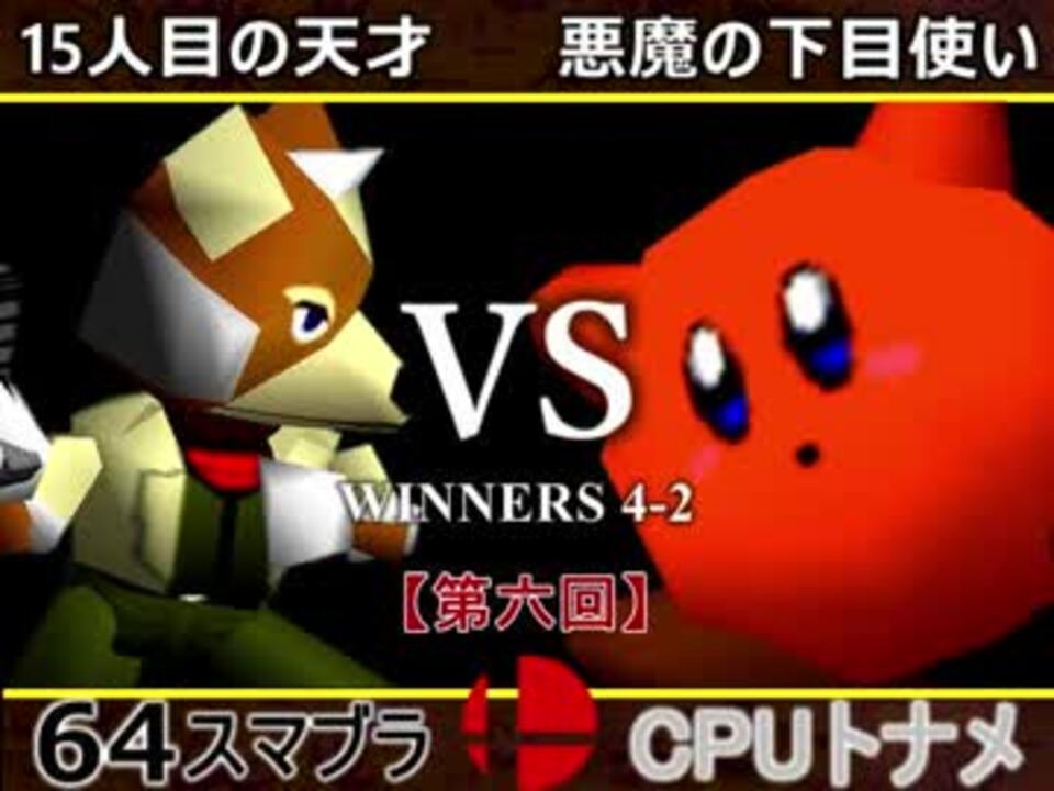 超実力者同士の対決!!!<br />※どちらが勝つかアンケ結果(Twitter調べ)<br />15人目の天才(SA) 72% VS 悪魔の下目使い(MA) 28% <br /> <br />【大会形式】ダブルイリミネーション方式トーナメント<br />・一度負けてもルーザーズ側を勝ち続ければ決勝に行ける<br /><br /><font color="#0000ff"><u>※64スマブラCPUトナメ実況のwikiができた模様</u>→</font> <a href="https://wiki3.jp/cpu_64" target="_blank" rel="noopener nofollow">https://wiki3.jp/cpu_64</a><br /><br /><b><font size="5"><font color="#ff0000">次→</font></font></b>【<a href="https://www.nicovideo.jp/watch/sm32949352" class="watch">sm32949352</a>】<br /><br />前【<a href="https://www.nicovideo.jp/watch/sm32937785" class="watch">sm32937785</a>】 一回戦第一試合【<a href="https://www.nicovideo.jp/watch/sm32538745" class="watch">sm32538745</a>】<br /><br />第六回マイリスト【<a href="https://www.nicovideo.jp/mylist/60846974" target="_blank" rel="noopener">mylist/60846974</a>】<br />64スマブラCPUトナメ実況part1まとめ【<a href="https://www.nicovideo.jp/mylist/60846861" target="_blank" rel="noopener">mylist/60846861</a>】<br />その他シリーズ【<a href="https://www.nicovideo.jp/mylist/12965027" target="_blank" rel="noopener">mylist/12965027</a>】<br /><br /><b><font color="#00bfff">Twitter</font></b>【@niconicopppppp】<br /><b><font color="#ff4500">チャンネル</font></b>【<a href="https://ch.nicovideo.jp/p-desu" target="_blank" rel="noopener">ch.nicovideo.jp/p-desu</a>】