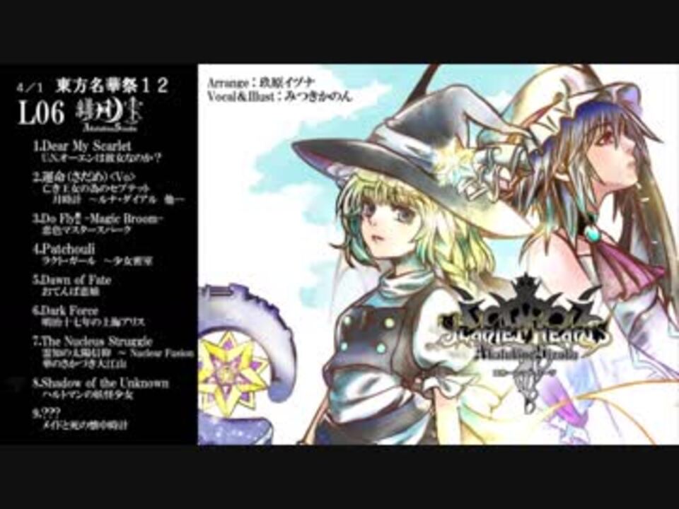 <br /><font size="3"><b>【東方名華祭12にて先行頒布】<font color="#0000ff">例大祭15新譜</font></b></font>の緋月ノ雫XFDです!<br />サークルスペースは<font size="5"><i>F45ab</i></font>になります!(委託販売はメロンブックス専売になります)<br /><b>キングダムハーツ風×東方オーケストラアレンジ</b>でお届けする<br /><font size="5"><b><font color="#980000">緋</font>月ノ雫</b></font>の全く新しい東方の世界観をご期待ください。<br /><br /><font size="2">4/4 原曲:メイドと血の懐中時計を間違えて死と書いていました、すみません…</font><br /><br />Circle:緋月ノ雫(co1763005) <a href="http://www.緋月ノ雫.jp/" target="_blank" rel="noopener nofollow">http://www.緋月ノ雫.jp/</a><br />Arrange:玖原イヅナ (<a href="https://www.nicovideo.jp/mylist/13117962" target="_blank" rel="noopener">mylist/13117962</a>) twitter⇒@Kuhara_Izuna<br />Illust&Vocal:みつき✂︎かのん twitter⇒@Mitsuki_Kannon<br /><br />緋月ノ雫メロンブックス予約ページはこちら!→<a href="http://ur2.link/Dc8c" target="_blank" rel="noopener nofollow">http://ur2.link/Dc8c</a><br /><font color="#cc0000"><font size="4"><b>例大祭15では新譜が4つ!</b></font><br /><b>①DOD3&NieR風東方</b></font>→<a href="https://www.nicovideo.jp/watch/sm33127867" class="watch">sm33127867</a> <br /><font color="#cc0000"><b>②東方バトルオーケストラ(オールインスト)</b></font>→<a href="https://www.nicovideo.jp/watch/sm32754762" class="watch">sm32754762</a><br /><font color="#cc0000"><b>③キングダムハーツ風東方</b></font>→イマココ<br /><font color="#cc0000"><b>④架空言語 初オリジナル曲</b></font>→<a href="https://www.nicovideo.jp/watch/sm33107849" class="watch">sm33107849</a><br />