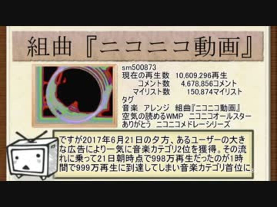 | 番号 | 総合順位 | ポイント | ジャンル順位 | カテゴリ | 再生順位 | 再生数 | コメント順位 | コメント数 | マイリスト順位 | マイリスト数 | いいね順位 | いいね数 |