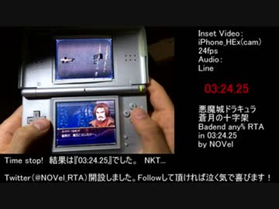 <span style="color: #ff0000; font-size: 18px;">Speedrun.com→<a href="https://www.speedrun.com/Castlevania_Dawn_of_Sorrow/run/zxv1n6gy" target="_blank" rel="noopener nofollow">https://www.speedrun.com/Castlevania_Dawn_of_Sorrow/run/zxv1n6gy</a></span><br>蒼月の十字架any% Badend RTAです。エイプリルフール企画ではありません笑<br>Bestend(<a href="https://www.nicovideo.jp/watch/sm31798294" class="watch">sm31798294</a>)は以前走りましたので、今回は最速で魔王になってみました。<br>世界記録です。<br><br><span style="color: blue;">twitterはじめました:@NOVel_RTA</span><br><br>RTA:<a href="https://www.nicovideo.jp/mylist/59766092" target="_blank" rel="noopener">mylist/59766092</a><br>格闘縛り:<a href="https://www.nicovideo.jp/mylist/59631247" target="_blank" rel="noopener">mylist/59631247</a><br>YouTube版:<a href="https://youtu.be/MwEBrN67gx0" target="_blank" rel="noopener nofollow">https://youtu.be/MwEBrN67gx0</a><br><br>SpecialThanks<br>ごちゃ氏ブログ:<a href="http://gocha.hatenablog.com/entry/20090831/DawnOfSorrowTAS" target="_blank" rel="noopener nofollow">http://gocha.hatenablog.com/entry/20090831/DawnOfSorrowTAS</a><br>mtbりc氏のTAS:親動画(<a href="https://www.nicovideo.jp/watch/sm25922829" class="watch">sm25922829</a>)<br>