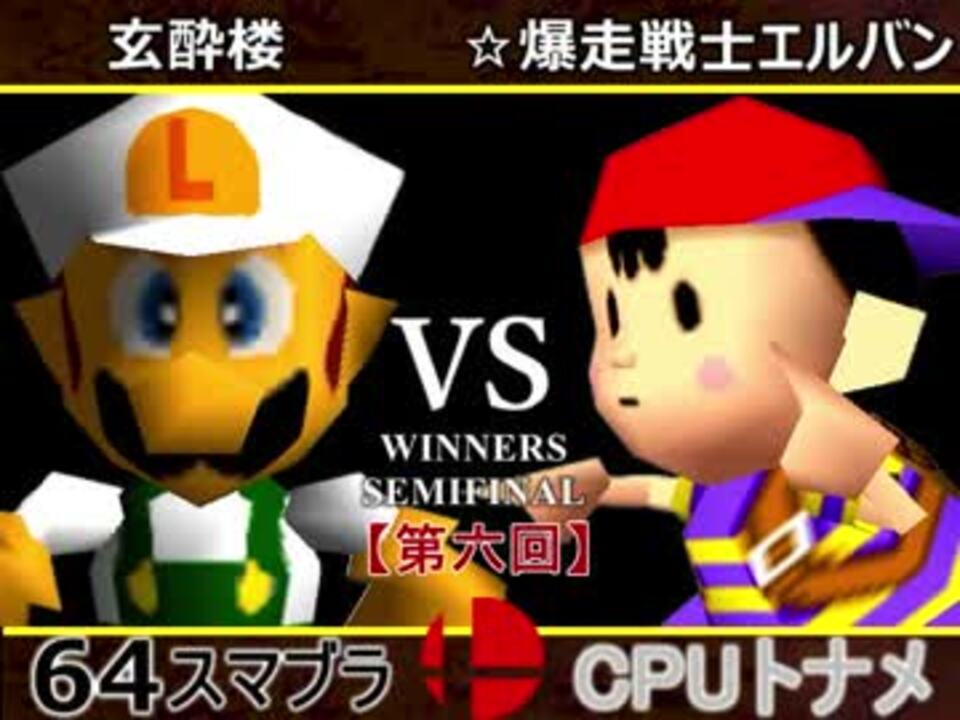無敗 VS 最強 <br />※どちらが勝つかアンケ結果(Twitter調べ)<br />玄酔楼(LU) 60% VS ☆爆走戦士エルバン(NE) 40% <br /> <br />【大会形式】ダブルイリミネーション方式トーナメント<br />・一度負けてもルーザーズ側を勝ち続ければ決勝に行ける<br /><br /><font color="#0000ff"><u>※64スマブラCPUトナメ実況のwikiができた模様</u>→</font> <a href="https://wiki3.jp/cpu_64" target="_blank" rel="noopener nofollow">https://wiki3.jp/cpu_64</a><br /><br /><b><font size="5"><font color="#ff0000">次→</font></font></b>【<a href="https://www.nicovideo.jp/watch/sm33003918" class="watch">sm33003918</a>】<br /><br />前【<a href="https://www.nicovideo.jp/watch/sm32994941" class="watch">sm32994941</a>】 一回戦第一試合【<a href="https://www.nicovideo.jp/watch/sm32538745" class="watch">sm32538745</a>】<br /><br />第六回マイリスト【<a href="https://www.nicovideo.jp/mylist/60846974" target="_blank" rel="noopener">mylist/60846974</a>】<br />64スマブラCPUトナメ実況part1まとめ【<a href="https://www.nicovideo.jp/mylist/60846861" target="_blank" rel="noopener">mylist/60846861</a>】<br />その他シリーズ【<a href="https://www.nicovideo.jp/mylist/12965027" target="_blank" rel="noopener">mylist/12965027</a>】<br /><br /><b><font color="#00bfff">Twitter</font></b>【@niconicopppppp】<br /><b><font color="#ff4500">チャンネル</font></b>【<a href="https://ch.nicovideo.jp/p-desu" target="_blank" rel="noopener">ch.nicovideo.jp/p-desu</a>】