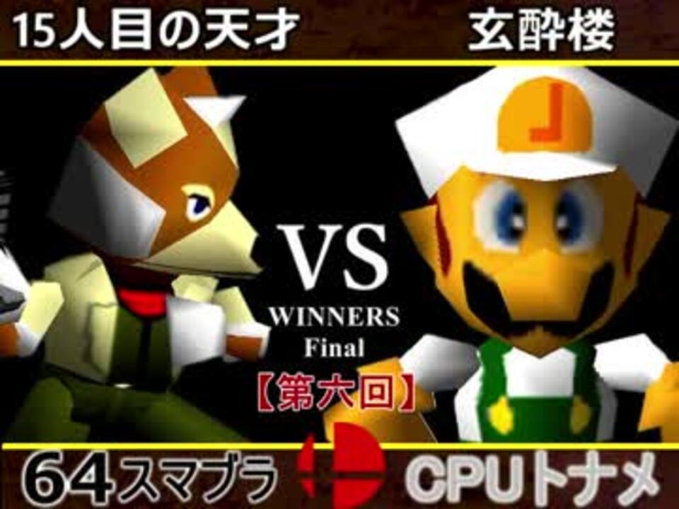 ついに出会ってしまった<br />※どちらが勝つかアンケ結果(Twitter調べ)<br />15人目の天才(FA) 45% VS 玄酔楼(NE) 55% <br /> <br />【大会形式】ダブルイリミネーション方式トーナメント<br />・一度負けてもルーザーズ側を勝ち続ければ決勝に行ける<br /><br /><font color="#0000ff"><u>※64スマブラCPUトナメ実況のwikiができた模様</u>→</font> <a href="https://wiki3.jp/cpu_64" target="_blank" rel="noopener nofollow">https://wiki3.jp/cpu_64</a><br /><br /><b><font size="5"><font color="#ff0000">次→</font></font></b>【<a href="https://www.nicovideo.jp/watch/sm33026169" class="watch">sm33026169</a>】<br /><br />前【<a href="https://www.nicovideo.jp/watch/sm33015140" class="watch">sm33015140</a>】 一回戦第一試合【<a href="https://www.nicovideo.jp/watch/sm32538745" class="watch">sm32538745</a>】<br /><br />第六回マイリスト【<a href="https://www.nicovideo.jp/mylist/60846974" target="_blank" rel="noopener">mylist/60846974</a>】<br />64スマブラCPUトナメ実況part1まとめ【<a href="https://www.nicovideo.jp/mylist/60846861" target="_blank" rel="noopener">mylist/60846861</a>】<br />その他シリーズ【<a href="https://www.nicovideo.jp/mylist/12965027" target="_blank" rel="noopener">mylist/12965027</a>】<br /><br /><b><font color="#00bfff">Twitter</font></b>【@niconicopppppp】<br /><b><font color="#ff4500">チャンネル</font></b>【<a href="https://ch.nicovideo.jp/p-desu" target="_blank" rel="noopener">ch.nicovideo.jp/p-desu</a>】