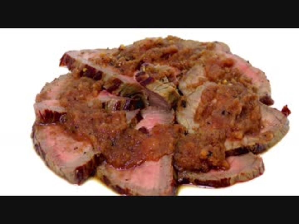 マンガ『衛宮さんちの今日のごはん』2巻に登場する、『フライパンだけで作るローストビーフ』を作ってみました。<br />美味です。<br /><br />★材料 <br />肉 300g<br />塩 小さじ1程度<br />にんにく 3かけ<br /><br />★ソース<br />リンゴ 1/8個<br />玉ねぎ 1/4個<br />赤ワイン 50cc<br />水 25cc<br />みりん 大さじ1<br />醤油 大さじ1.5<br />酢 大さじ1<br />バター 5g<br /><br /><font size="3"><b><font color="#ff0000">※追記</font></b></font><br /><font size="4"><b>. </b></font>さん<br /><font size="4"><b>KANA</b></font>さん<br /><font size="4"><b>◎=</b></font><font color="#252525"><b> </b>さん</font><br />広告ありがとうございます!<br /><br />【唐揚げ研究第一弾 <a href="https://www.nicovideo.jp/watch/sm33038029" class="watch">sm33038029</a>】←前回 次回→【唐揚げ研究第二弾 <a href="https://www.nicovideo.jp/watch/sm33059068" class="watch">sm33059068</a>】<br /><br />【コミュにティ】<br />co3791326<br /><br />【お料理動画集】<br /><a href="https://www.nicovideo.jp/mylist/60846296" target="_blank" rel="noopener">mylist/60846296</a><br /><br />【お菓子作り成長記録】<br /><a href="https://www.nicovideo.jp/mylist/60997480" target="_blank" rel="noopener">mylist/60997480</a><br /><br />【part1 動画集】<br /><a href="https://www.nicovideo.jp/mylist/60726069" target="_blank" rel="noopener">mylist/60726069</a><br /><br />【Youtube版】<br /><a href="https://youtu.be/r45MZvj_w_w" target="_blank" rel="noopener nofollow">https://youtu.be/r45MZvj_w_w</a> <br /><br />【twitter】<br /><a href="https://twitter.com/Ca_tHeRI_Ne" target="_blank" rel="noopener nofollow">https://twitter.com/Ca_tHeRI_Ne</a><br />