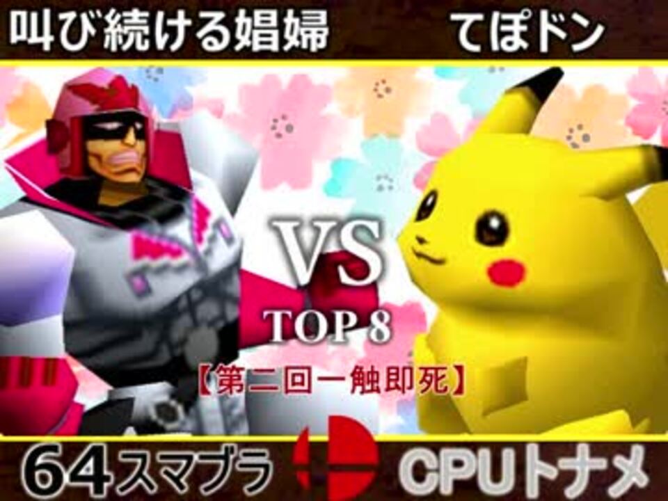 てぽドンの恐怖で叫び続ける娼婦<br />※どちらが勝つかアンケ結果(Twitter調べ)<br />叫び続ける娼婦(FA)57% VS てぽドン(PI) 43% <br /><br /><font color="#0000ff"><u>※64スマブラCPUトナメ実況のwikiができた模様</u>→</font> <a href="https://wiki3.jp/cpu_64" target="_blank" rel="noopener nofollow">https://wiki3.jp/cpu_64</a><br /><br /><b><font size="5"><font color="#ff0000">次→</font></font></b>【<a href="https://www.nicovideo.jp/watch/sm33116818" class="watch">sm33116818</a>】※毎日投稿<br /><font color="#0000ff"><b>【第七回】チームトナメのチーム決め放送</b></font>【<a href="https://live.nicovideo.jp/watch/lv312748467" target="_blank" rel="noopener">lv312748467</a>】※4/30(月)22:00~<br /><br />前【<a href="https://www.nicovideo.jp/watch/sm33111155" class="watch">sm33111155</a>】 一回戦第一試合【<a href="https://www.nicovideo.jp/watch/sm33080922" class="watch">sm33080922</a>】<br /><br />第二回マイリスト【<a href="https://www.nicovideo.jp/mylist/61420308" target="_blank" rel="noopener">mylist/61420308</a>】<br />64スマブラCPUトナメ実況part1まとめ【<a href="https://www.nicovideo.jp/mylist/60846861" target="_blank" rel="noopener">mylist/60846861</a>】<br />その他シリーズ【<a href="https://www.nicovideo.jp/mylist/12965027" target="_blank" rel="noopener">mylist/12965027</a>】<br /><br /><b><font color="#00bfff">Twitter</font></b>【@niconicopppppp】<br /><b><font color="#ff4500">チャンネル</font></b>【<a href="https://ch.nicovideo.jp/p-desu" target="_blank" rel="noopener">ch.nicovideo.jp/p-desu</a>】