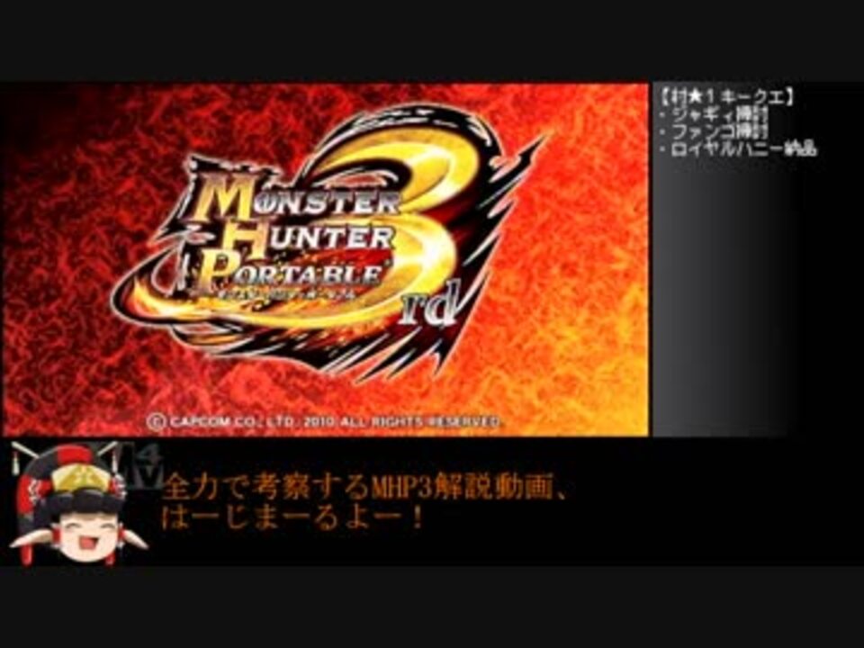 縛らないけど、ピシッと攻略していく動画です。<br><span style="color: #000000; font-size: 14px;">動画再生時間は210分ちょっとです。</span><br><br>ないです≪前〔<a href="https://www.nicovideo.jp/mylist/61844905" target="_blank" rel="noopener">mylist/61844905</a>〕次≫<a href="https://www.nicovideo.jp/watch/sm33121331" class="watch">sm33121331</a><br>(part1リンク:<a href="https://www.nicovideo.jp/mylist/58485024" target="_blank" rel="noopener">mylist/58485024</a>)<br><br>アニクミ兄貴、キャベツ&レタス兄貴、kyoro兄貴、august兄貴 、0035兄貴、極東北面兄貴、もめんこんにゃく兄貴、岡白兄貴、692兄貴、霧祢兄貴、まるも兄貴、レインちゃん姉貴兄貴、Lamia兄貴、三浦大先輩、反乱分子。兄貴、yu-ya兄貴、なんとか人形兄貴、さびた塊兄貴、ひまわり兄貴、MegNis兄貴、タカハシ兄貴、ソウゲン兄貴、ae兄貴、ぬっぺっぼう兄貴、ほろすず兄貴、ザッシュ暁犬兄貴、Altschwarz兄貴、シルヴァー兄貴、AZUKI兄貴、あーる兄貴、ごふん兄貴、ビア樽兄貴、拝み屋兄貴、donbuly兄貴、豆鉄砲兄貴、Hebiko兄貴、ゆっくりだいち兄貴、けら兄貴、SKYHIGH兄貴、おおたい兄貴、ホムーランダービー兄貴、煎茶はいかかが?兄貴、ななし兄貴、日本兵兄貴、俺やで兄貴、村生矮鶏兄貴、ラミ助兄貴、Latis兄貴、omore兄貴、キャベツ&レタス兄貴、WRLD兄貴、はしまで餡子兄貴、ポカリ兄貴、戸田屋兄貴、ろがみ兄貴、橘ギャレン兄貴、飛翔兄貴<br>広告ありがとナス!<br>MHP3Gは私も待ってます。<br>