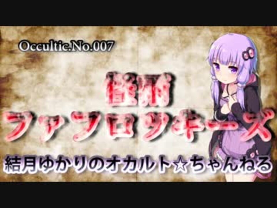 みなさん、はじめまして。結月ゆかりです。 <br />Twitterをはじめましたので、よろしければフォローお願いします。 ↓<br /><a href="https://twitter.com/yukari_occult" target="_blank" rel="noopener nofollow">https://twitter.com/yukari_occult</a><br /><br />【結月ゆかりのオカルト☆ちゃんねる】を観に来てくださり、ありがとうございます。<br />ここでは、みなさんがよく耳にするような、オカルトの情報をお送りする番組です。<br /><br />マイリスト <a href="https://www.nicovideo.jp/mylist/61315253" target="_blank" rel="noopener">mylist/61315253</a><br /><br />初回 <a href="https://www.nicovideo.jp/watch/sm32904176" class="watch">sm32904176</a>/前回 <a href="https://www.nicovideo.jp/watch/sm33079002" class="watch">sm33079002</a>/次回 <a href="https://www.nicovideo.jp/watch/sm33148353" class="watch">sm33148353</a><br /><br />結月ゆかりのオカルト☆ちゃんねる<br />YouTubeで高画質版がアップされています。↓<br /><a href="https://www.youtube.com/watch?v=OzI3iq9KunE" target="_blank" rel="noopener nofollow">https://www.youtube.com/watch?v=OzI3iq9KunE</a><br /><br />より詳しい内容をお求めでしたら、公式ブログを御覧ください。<br /><br />公式ブログはこちら <br /><a href="http://blog.livedoor.jp/yukari_occult" target="_blank" rel="noopener nofollow">http://blog.livedoor.jp/yukari_occult</a><br /><br />使用素材はこちら<br /><br />結月ゆかりblueberry 様<br />ニコニコ静画 <a href="http://seiga.nicovideo.jp/user/illust/1584023" target="_blank" rel="noopener nofollow">http://seiga.nicovideo.jp/user/illust/1584023</a><br />背景素材ロゴ(ROGO) 様<br />ニコニ・コモンズ <a href="http://commons.nicovideo.jp/user/2853679" target="_blank" rel="noopener nofollow">http://commons.nicovideo.jp/user/2853679</a><br />枠素材 華音3R 様<br />ニコニ・コモンズ <a href="http://commons.nicovideo.jp/user/3921701" target="_blank" rel="noopener nofollow">http://commons.nicovideo.jp/user/3921701</a><br />BGM甘茶の音楽工房 様<br /><a href="http://amachamusic.chagasi.com" target="_blank" rel="noopener nofollow">http://amachamusic.chagasi.com</a>