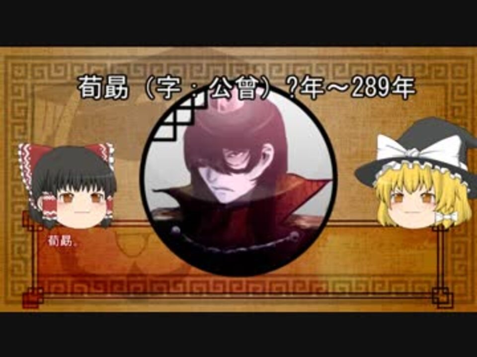 この動画は東方projectの二次創作です。AquesTalkライセンス購入済み。<br> <br><span style="color: #000000; font-size: 14px;">◇反三国志二次創作同人誌「叔漢二國史」</span><span style="color: #006699; font-size: 16px;"><a href="https://danxiawangchao.booth.pm/items/2029329" target="_blank" rel="noopener nofollow">https://danxiawangchao.booth.pm/items/2029329</a></span><br><br>三国志のメジャーではないけど面白い人物やもっと評価される人物を紹介していきます。<br>荀勗は荀氏と鍾氏の血を引く名門のハイブリッドとして生を受け、人並外れた才能を持っていました。<br>しかし彼にはもう一つの一面がありました。今回は二つの顔を持つ男荀勗を、終わりゆく一つの時代と共に追っていきたいと思います。<br><br>▷第六回「田疇」<a href="https://www.nicovideo.jp/watch/sm33062217" class="watch">sm33062217</a><br>▷第八回「闞沢」<a href="https://www.nicovideo.jp/watch/sm33209797" class="watch">sm33209797</a><br><br>◆◆◆◆◆◆◆◆◆◆◆◆◆◆◆◆◆◆◆◆◆◆◆<br>参考文献、補足など <br>亶夏王朝府 <a href="https://danxiawangchao.hatenablog.com/" target="_blank" rel="noopener nofollow">https://danxiawangchao.hatenablog.com/</a> <br>この動画の参考文献 <a href="https://danxiawangchao.hatenablog.com/entry/2018/08/03/043245" target="_blank" rel="noopener nofollow">https://danxiawangchao.hatenablog.com/entry/2018/08/03/043245</a><br><br>第一回~第十一回までのイラストまとめ <br>Pixiv <a href="https://www.pixiv.net/member_illust.php?mode=medium&illust_id=70532849" target="_blank" rel="noopener nofollow">https://www.pixiv.net/member_illust.php?mode=medium&illust_id=70532849</a> <br>ニコニコ静画 <span style="color: #000000; font-size: 13px;"><a href="https://seiga.nicovideo.jp/user/illust/598620" target="_blank" rel="noopener">user/illust/598620</a></span><br>BOOTH <a href="https://danxiawangchao.booth.pm/" target="_blank" rel="noopener nofollow">https://danxiawangchao.booth.pm/</a><br><br>YouTubeにもアップロードしています。よろしければ評価、チャンネル登録よろしくお願いします。<br><a href="https://youtu.be/D8IBsjGJ_AI" target="_blank" rel="noopener nofollow">https://youtu.be/D8IBsjGJ_AI</a><br>◆◆◆◆◆◆◆◆◆◆◆◆◆◆◆◆◆◆◆◆◆◆◆<br><br>音楽効果音提供<br>チンドン演歌/稿屋 隆 様<br>月下盛宴 /龍的交響楽 様<br>効果音ラボ 様