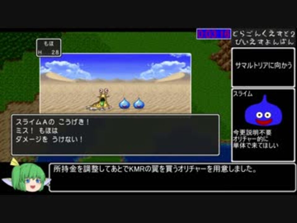 RPGの動画は初投稿です。<br>エンコ回数増やしたら変なゴミついたけどゆるして<br><br>音量他、細かい要望についてはPart3あたりから反映予定です。<br><br>スタート~3人集結まで<br><br>計測開始:「冒険をする」を選択時、その後冒険の書を新規作成して開始<br>計測終了:エンディング終了後「The END」の文字が出きった瞬間<br><br>中断の書・オートセーブの使用は禁止<br>色々参考にした先駆者兄貴のチャート:<a href="https://ch.nicovideo.jp/article/ar579262" target="_blank" rel="noopener">ar579262</a> <br>色々参考にした先駆者兄貴の動画→<a href="https://www.nicovideo.jp/watch/sm32819714" class="watch">sm32819714</a><br><br>次→<a href="https://www.nicovideo.jp/watch/sm33169358" class="watch">sm33169358</a><br><br>ふくびき有の再走→<a href="https://www.nicovideo.jp/watch/sm33606557" class="watch">sm33606557</a> <br><br>DQ2マイリスト<br><a href="https://www.nicovideo.jp/mylist/62866723" target="_blank" rel="noopener">mylist/62866723</a><br>作品別Part1集<br><a href="https://www.nicovideo.jp/mylist/58180228" target="_blank" rel="noopener">mylist/58180228</a><br><br>cat兄貴、のぶ兄貴、にぼし兄貴、jambo兄貴、<span style="color: #000000; font-size: 13px;">週休8日兄貴、</span><br>他総勢176名(義)の兄貴達、宣伝アリシャス!<br>1日で文字制限で入りきらないとか想像しなかったゾ…<br>