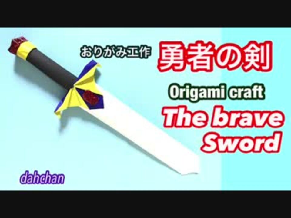 Special Thanks! : エックスさま☆<br /> 冬原雪美さま☆<br />***********<br /><br />ご覧いただきありがとうございます♪<br /><br />おりがみとA4用紙と画用紙を使って<br />勇者の剣っぽいものをつくりました<br /><br />よかったら作ってみてね☆<br /><br />兜と盾も作ってますので合わせて作って装備して遊んでね☆<br />勇者の兜(っぽいの) <a href="https://www.nicovideo.jp/watch/sm33161651" class="watch">sm33161651</a><br />勇者の盾(っぽいの)<a href="https://www.nicovideo.jp/watch/sm33155851" class="watch">sm33155851</a><br /><br />☆☆☆☆<br /><br />音楽提供★甘茶の音楽工房さま(春の予感)<br /><br />他折り紙作品はこちら→<a href="https://www.nicovideo.jp/mylist/56634401" target="_blank" rel="noopener">mylist/56634401</a><br />ついったー垢→@dachan2525<br />いんすた垢→@dachan25